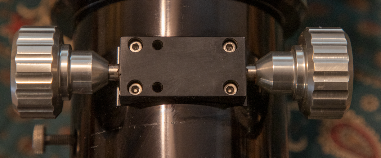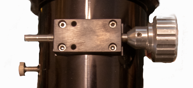 AP155 Focuser with the knob off - showing the smooth round shaft. (Credit: Image by Rick Albrecht, used with permission.
