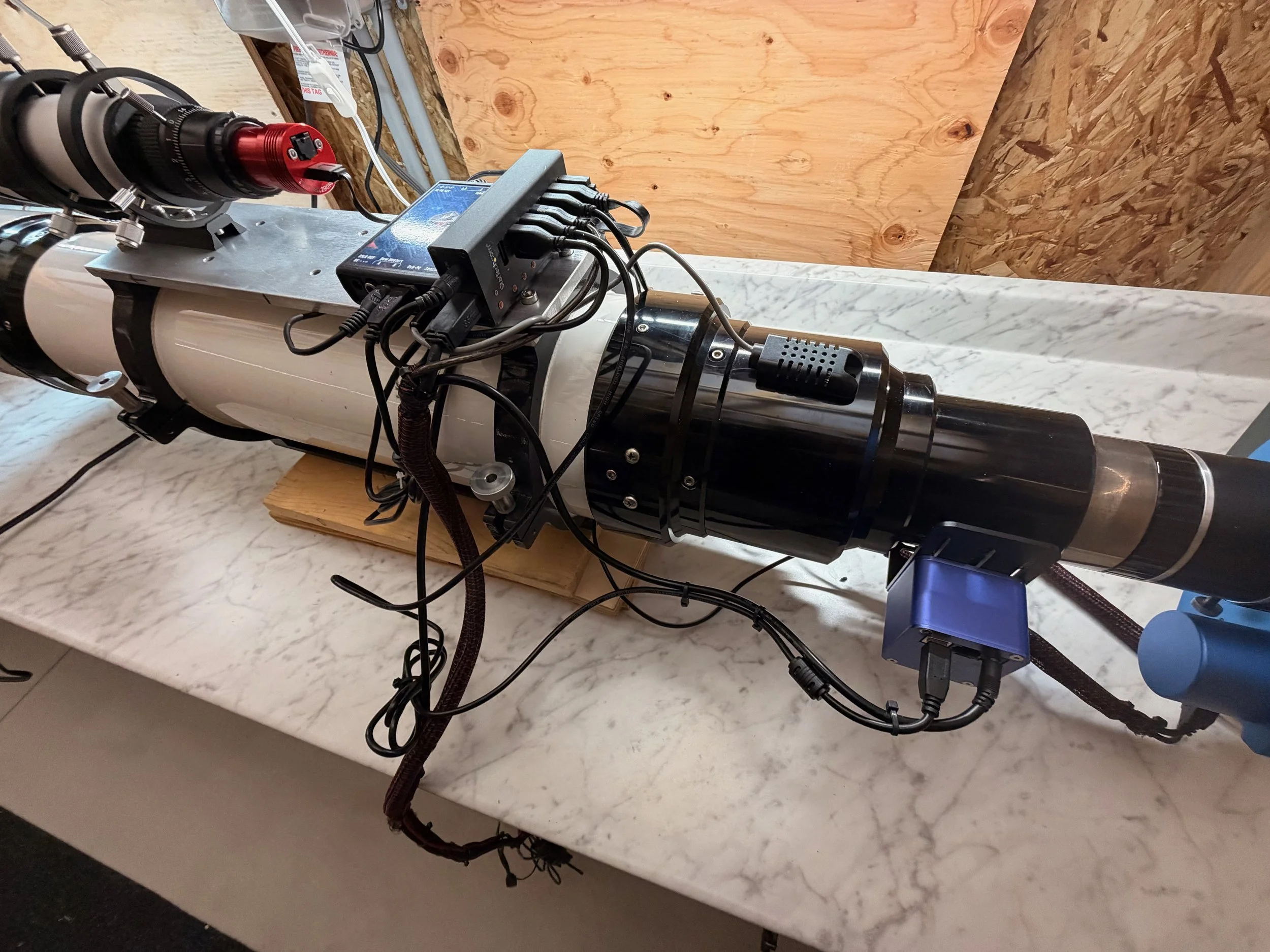 A telescope may be optically superb, but that does not automatically make it a practical observatory platform. In this case, moving from the AP130 to the AP155 introduced a series of mechanical and operational challenges. The new scope is larger, heavier, and longer. It changed the load distribution on the mount, affected the observatory's clearance, and forced a rethink of how accessories, guiding hardware, power distribution, and cable routing would be handled.