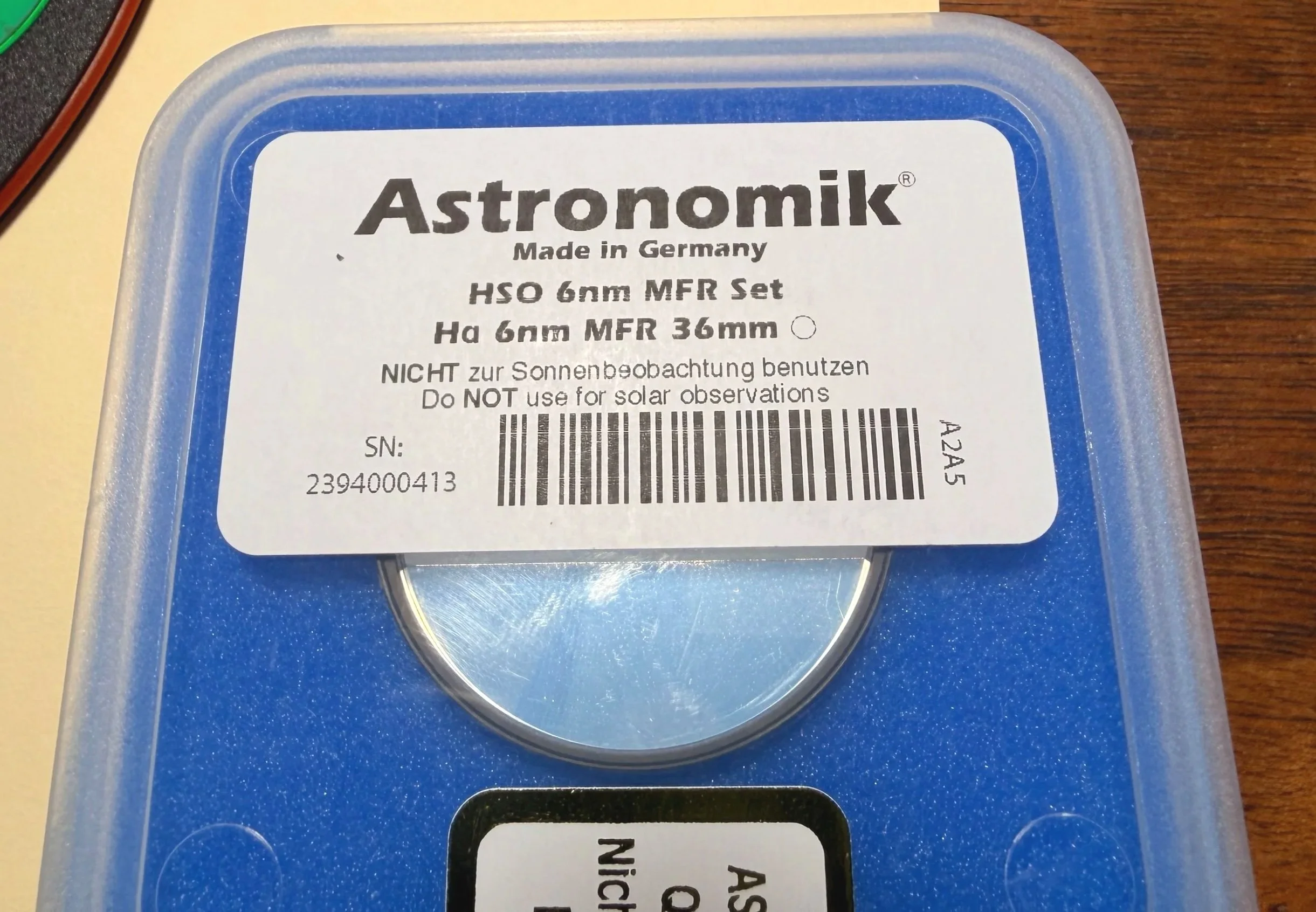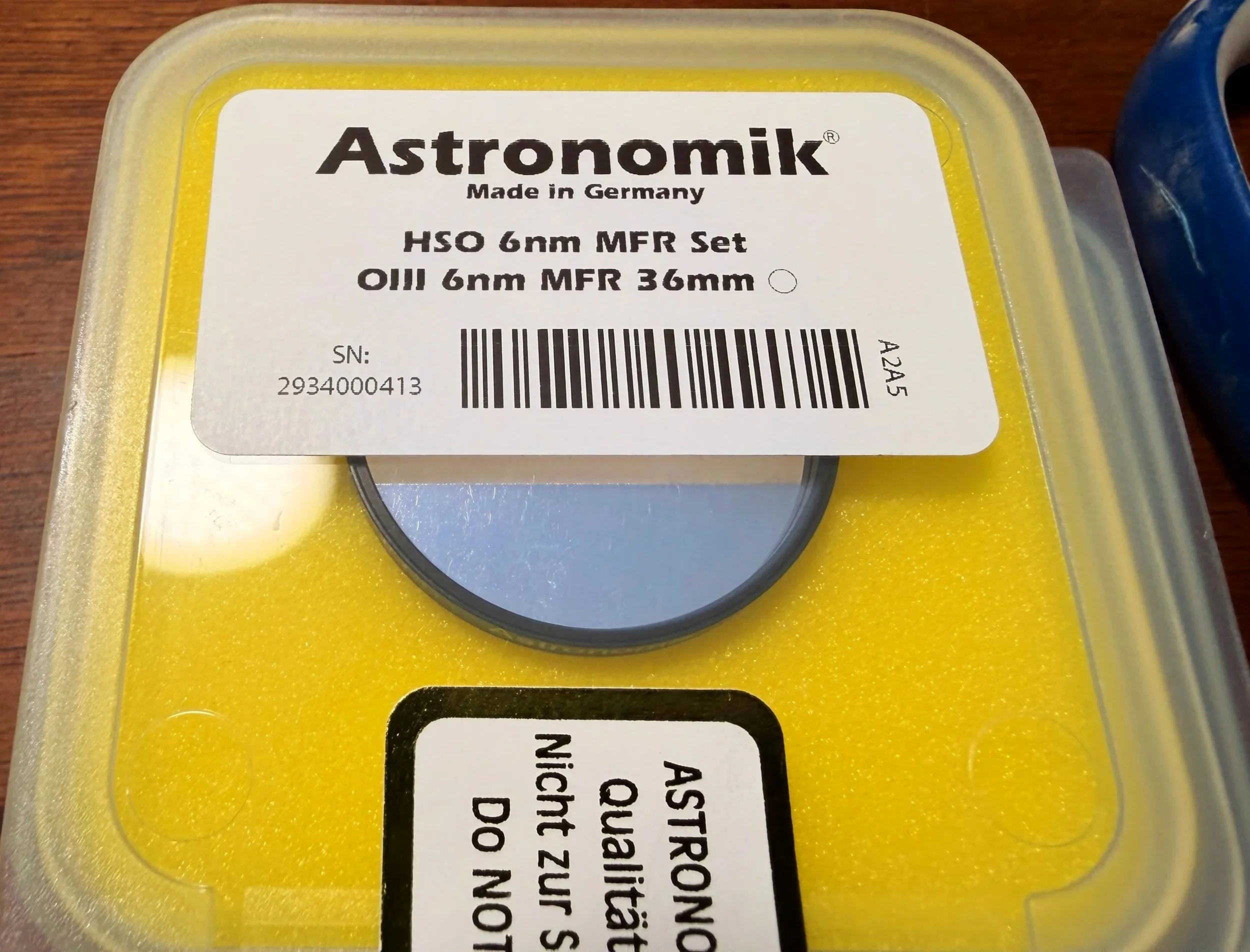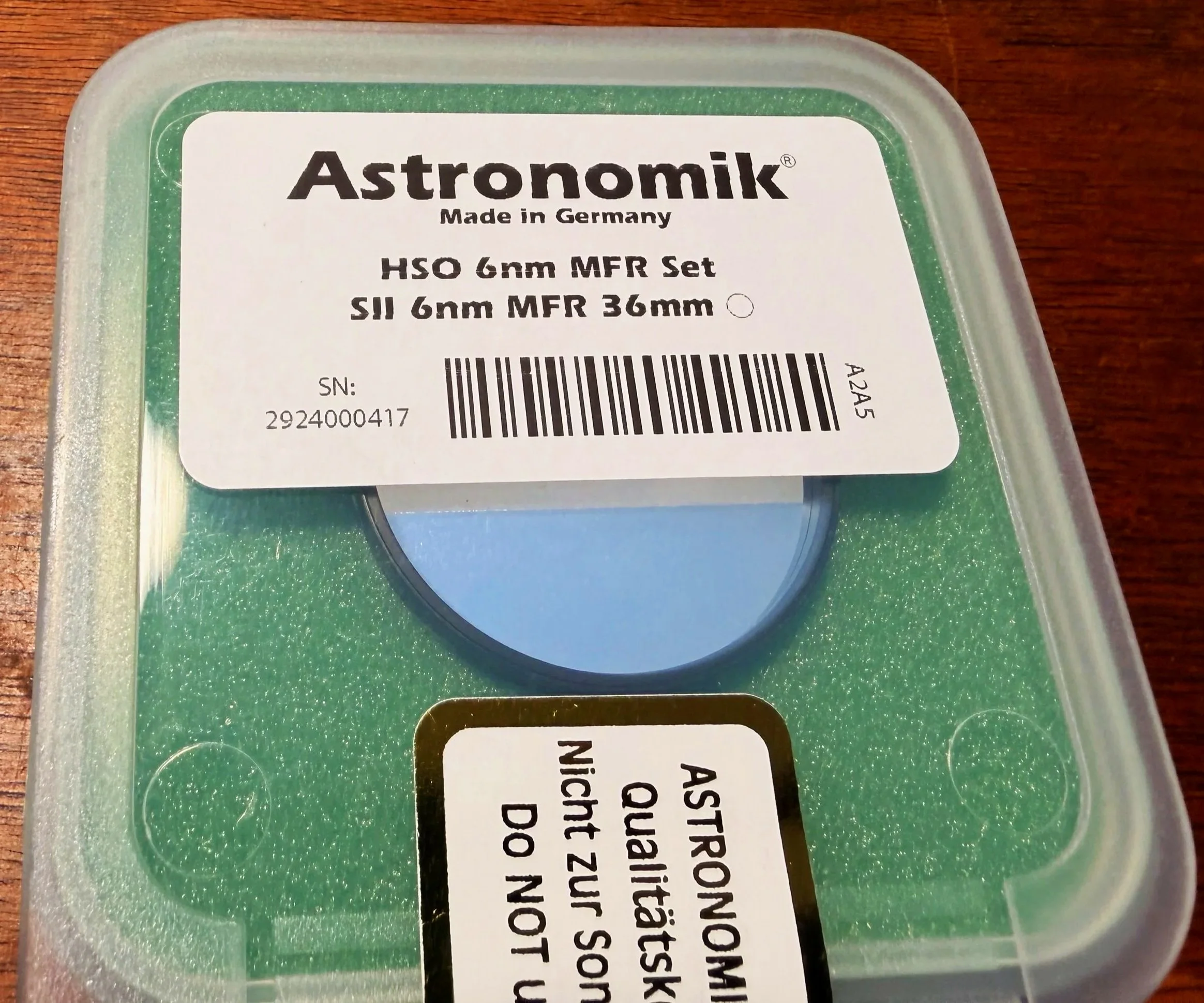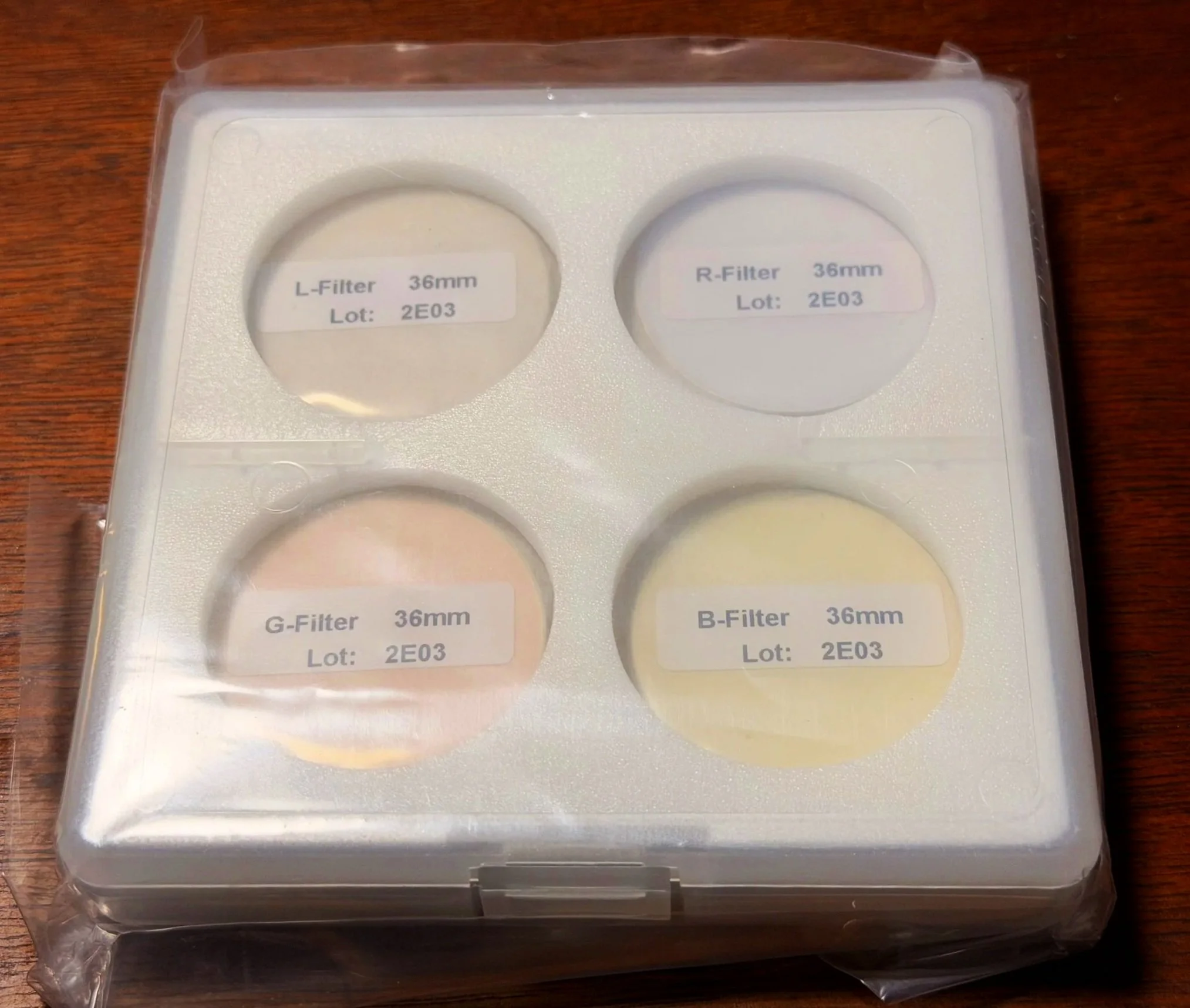 I bought a set of ZWO 36mm unmounted filters. I have had good results from these in the past, and they are cost-effective, so I am using them again.