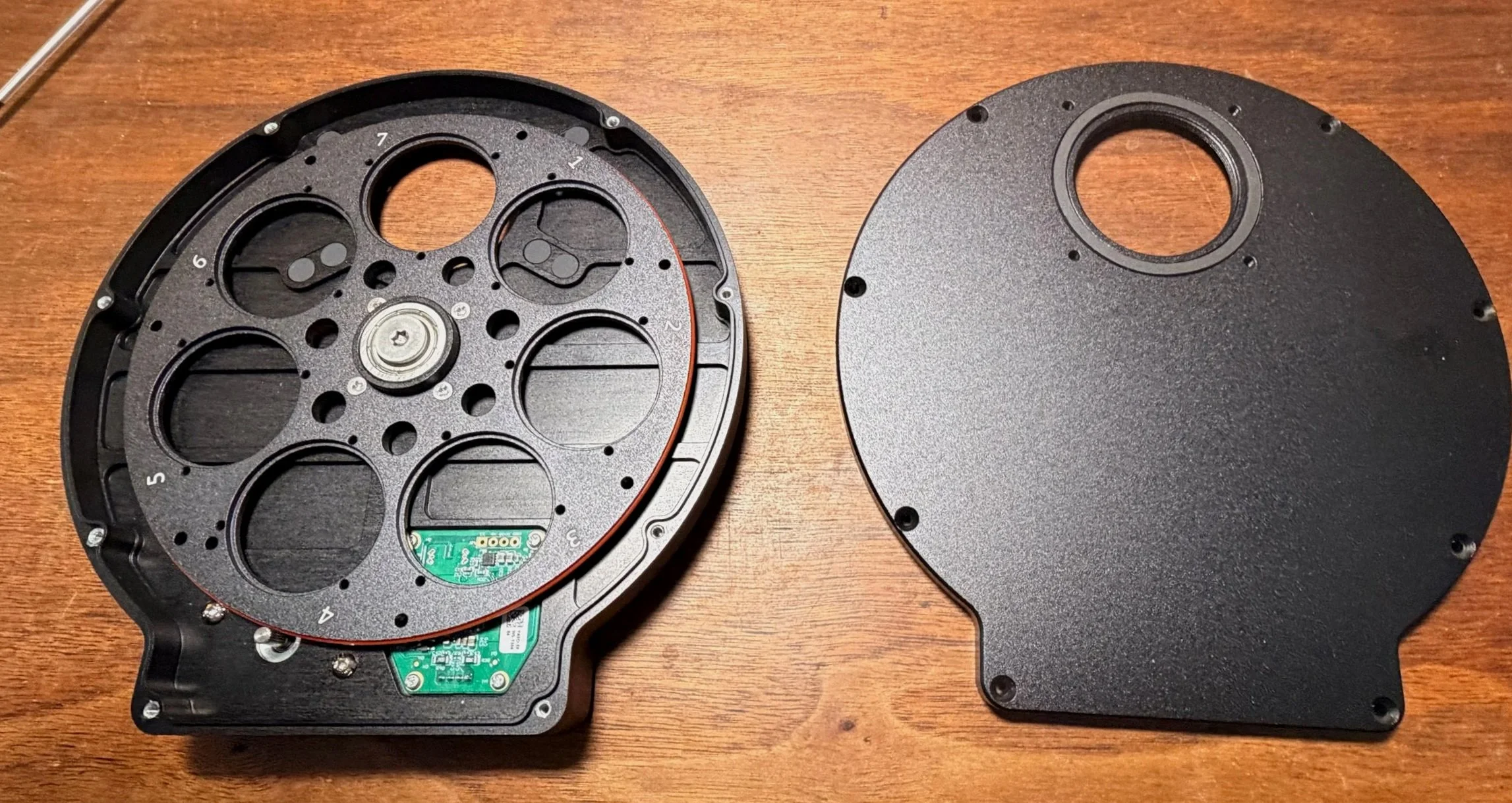 The filter wheel now installed back in the case.