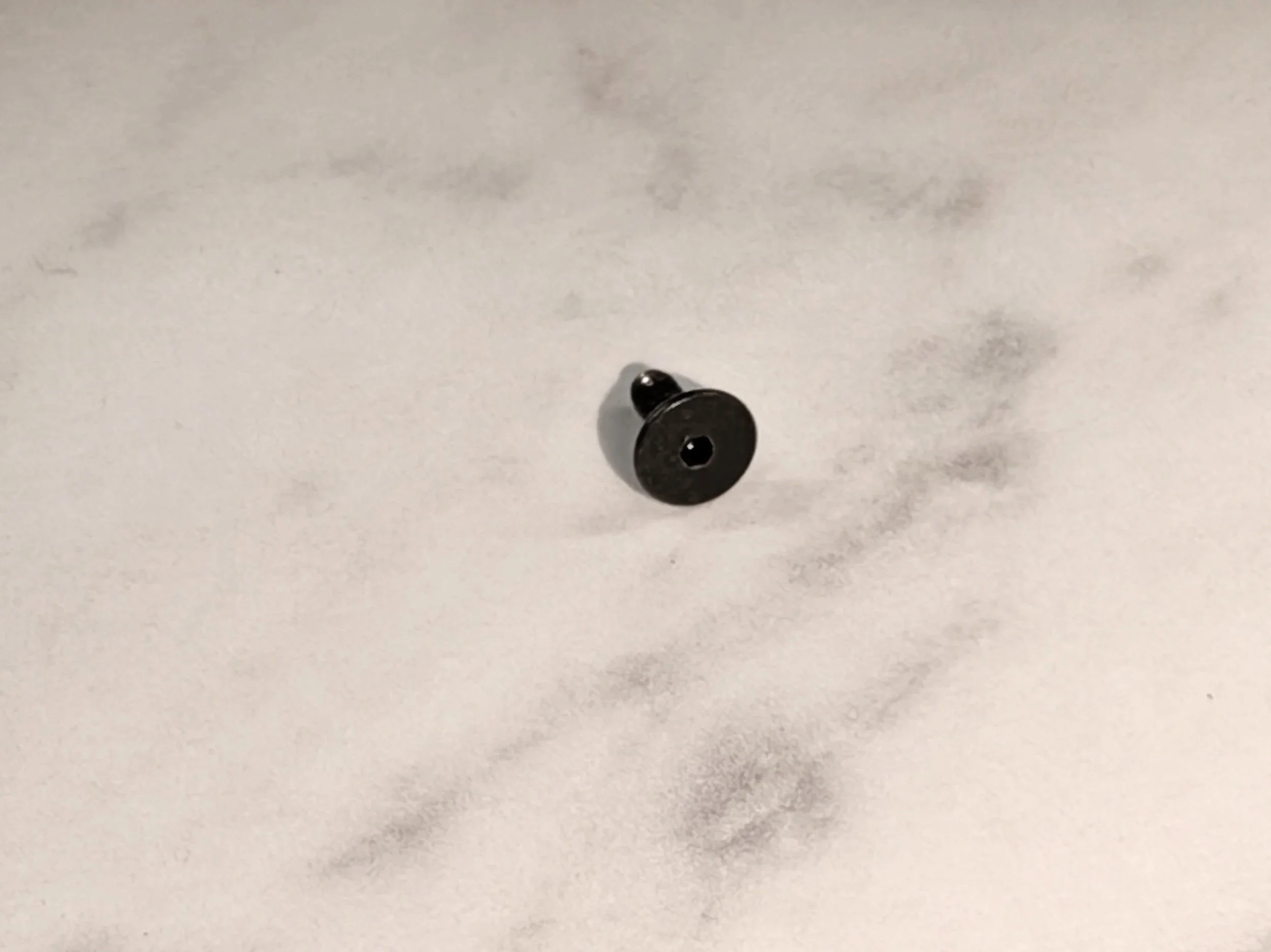Then I remembered that I had a small powered screwdriver built for use on small electronics. That set had bits down to 0.7mm, and I found that the 1.3mm Allen head fit perfectly. So much so that I could mount the screw in the bit, and it would stay there as I went to thread it in.