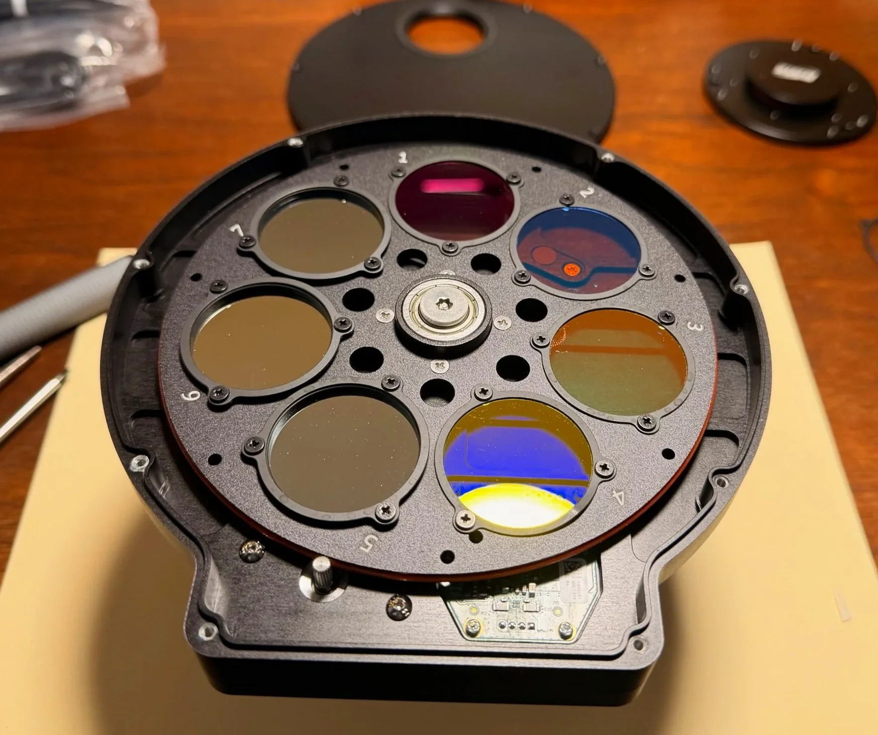 Getting the unmounted filters secured in the filter wheel is tricky and nerve-racking, but I know how to do it.