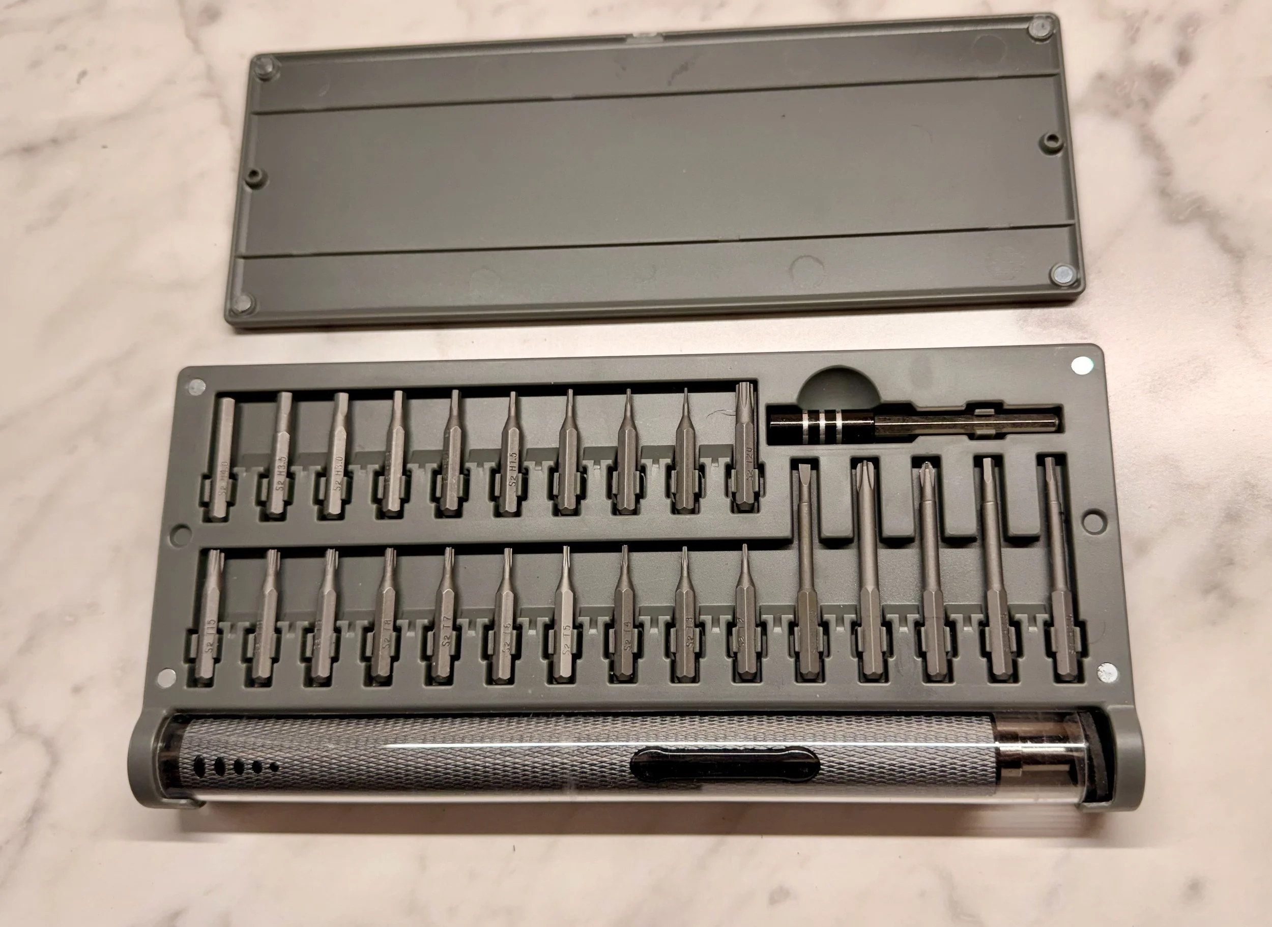 This small-electronics kit powered screw drive had the small Allen bit that I needed - 1.3mm.