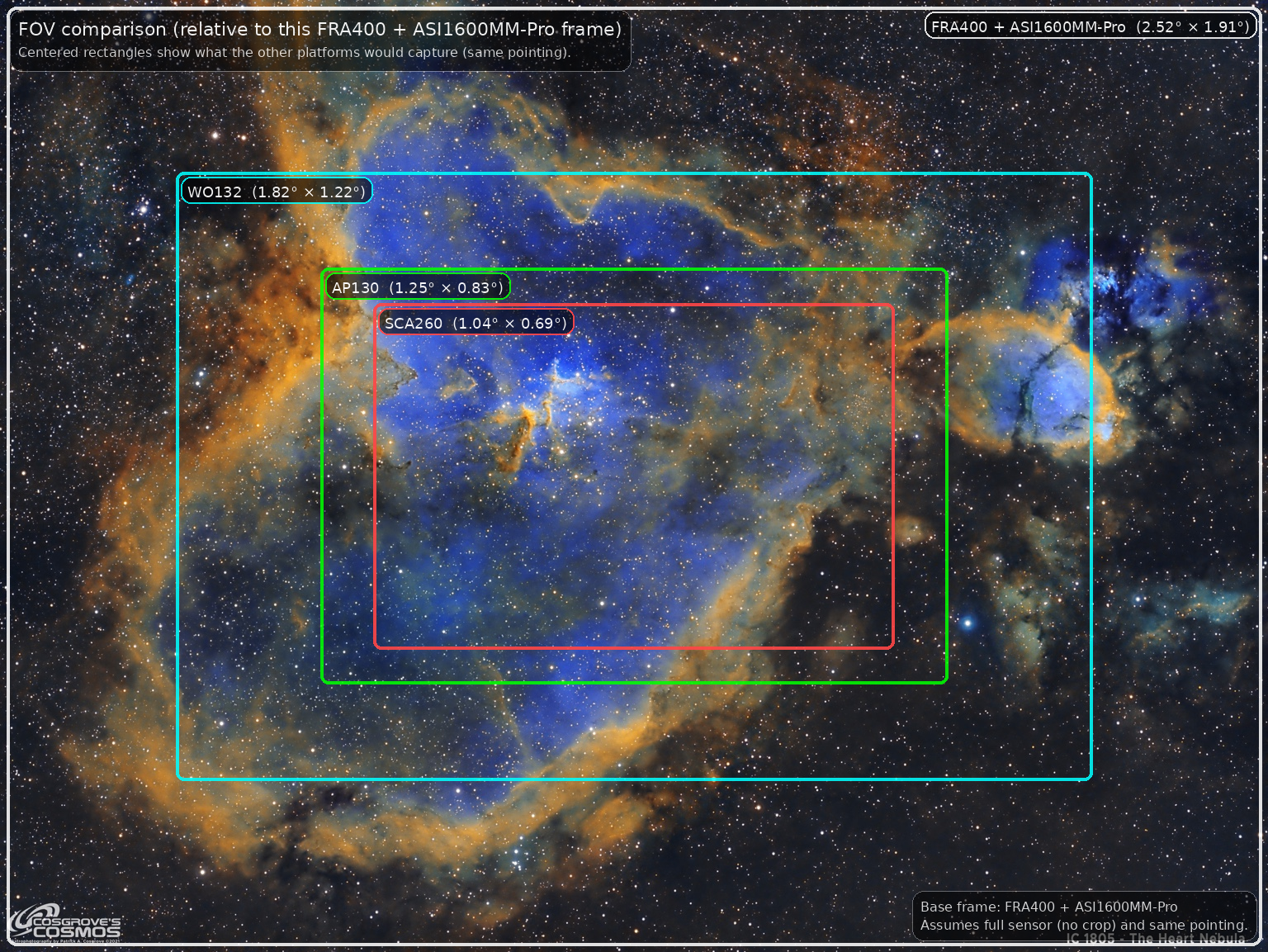 The SCA260 isn’t “a little tighter” than the refractors—it’s in a different framing class, and that’s exactly why it’s my small-target / galaxy tool when I want reach and a composition that feels intentional.