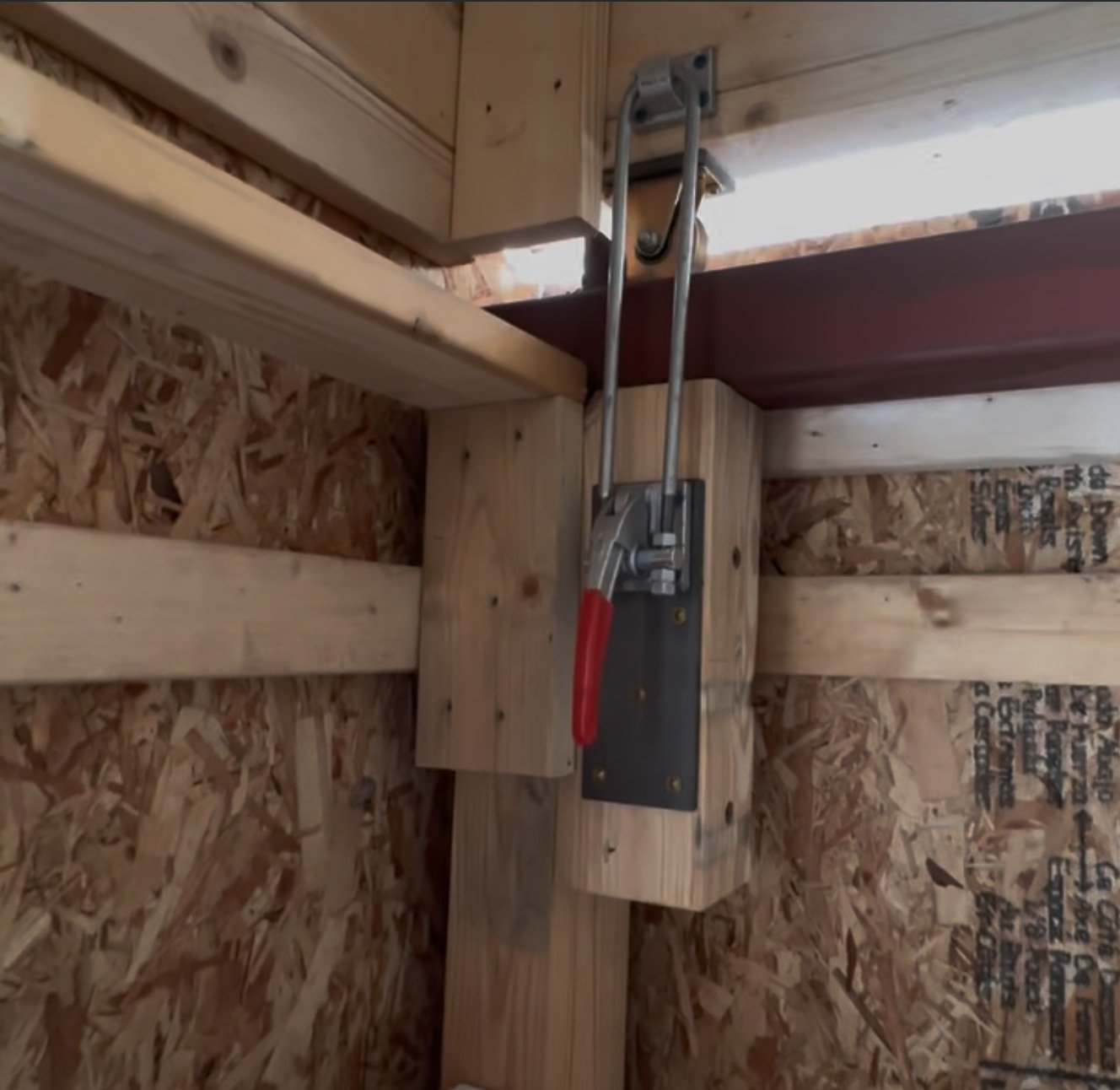 Lockdown Your Passive Lock Downs! I had some ideas around this that could have been done early in the build process when the welder was on site. But we did not get to it during the available time we had with him. Later, he took on a big job that made it unavailable, so we came up with a plan that would work without a welder. We chose one that could be added on after the building was done. But this plan has hidden flaws and is not viable. I now need to come up with something new. It hasn't been a big deal so far, but there is an automated part I can no longer access without it. I should have prioritized this feature up front. The builder suggested that the welder was good at working details like this, so we left it loose. This was a mistake.
