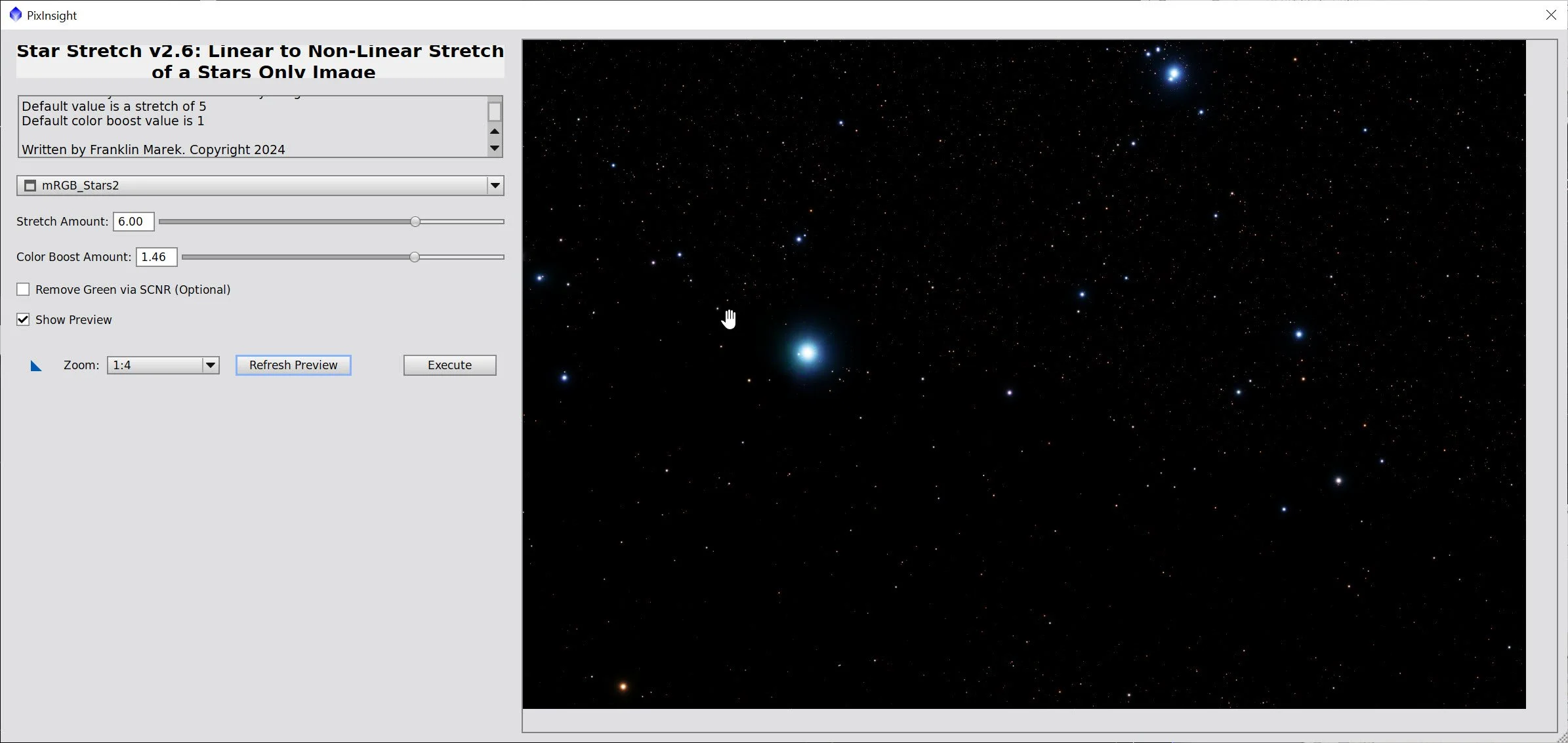Using the ScreenStars Script, add stars back into our RGB starless image.