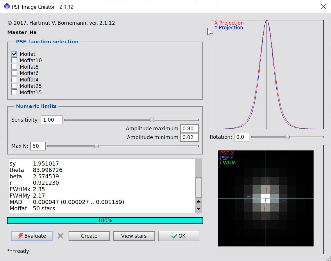 Run the PFSImage script to measure star sizes. X = 2.35, Y 2.17. This will influence the values used in BXT.