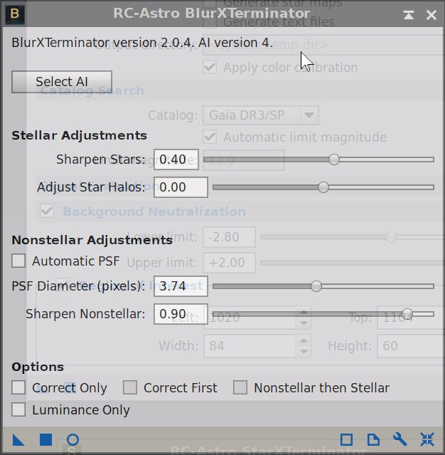 Run Full BXT - I am using an enhanced set of values to shrink stars more. These are about a third more than the measured star sizes. See the BXT Panel Snapshot below.