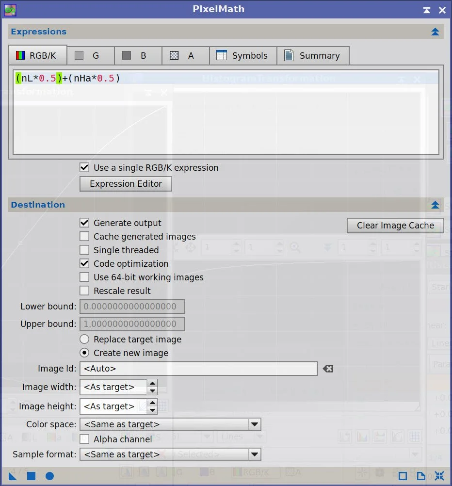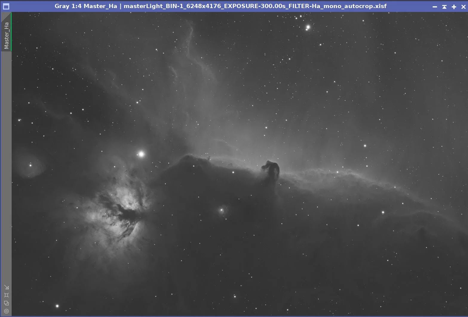 Finally, I ran SXT to remove stars, but I did not preserve the stars - I will not be using the Ha stars going further.