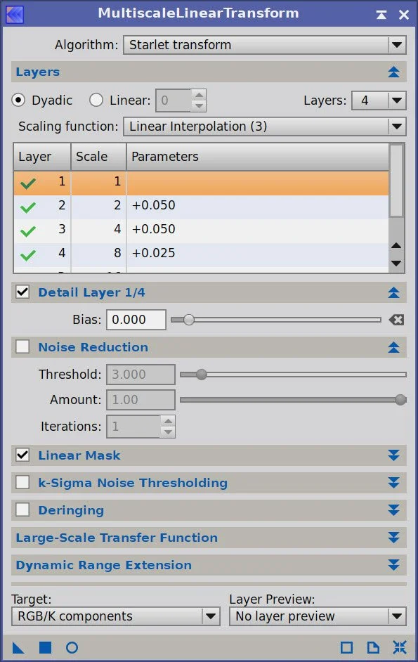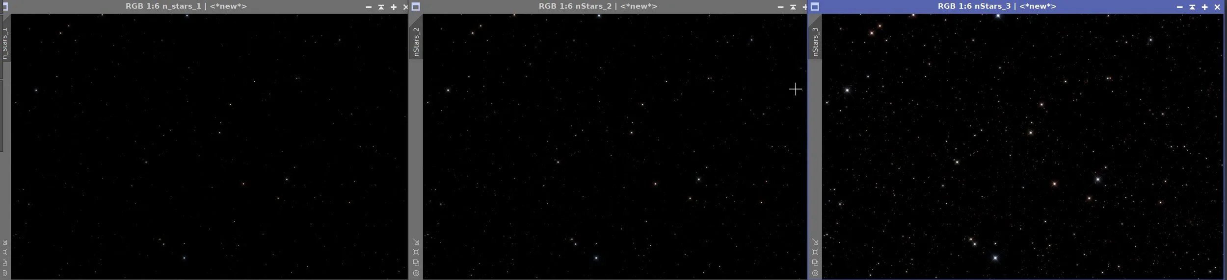 Using Seti Astro Star Stretch, take the RGB Star image nonlinear with 3 levels of star stretch so that later, we have a choice of what size stars to use.