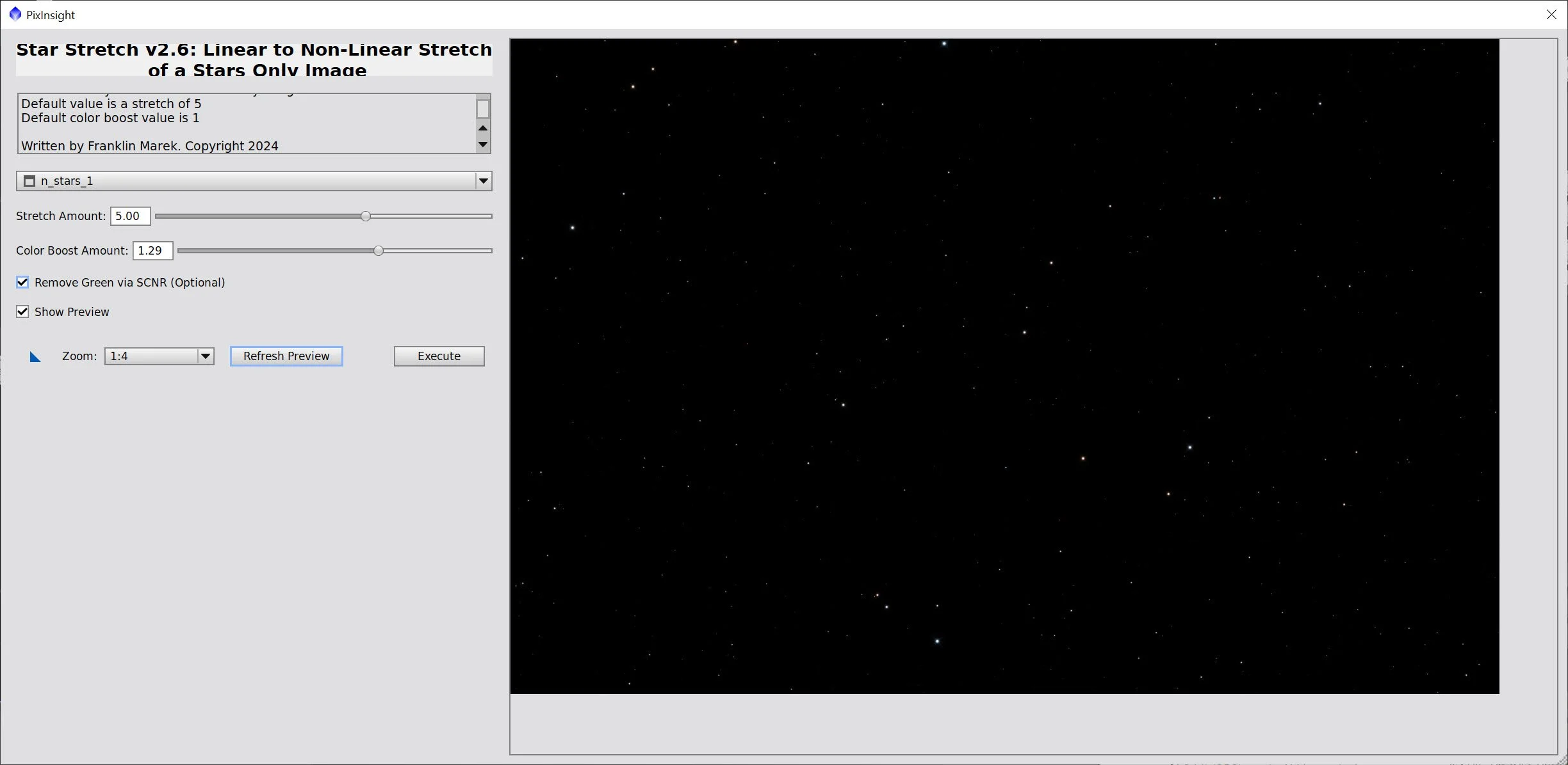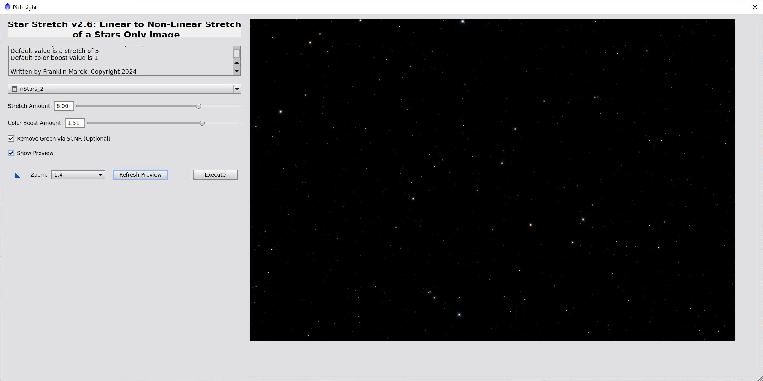 The Star Stretch Script and parameters used for Stars_1 - with the lowest stretch.