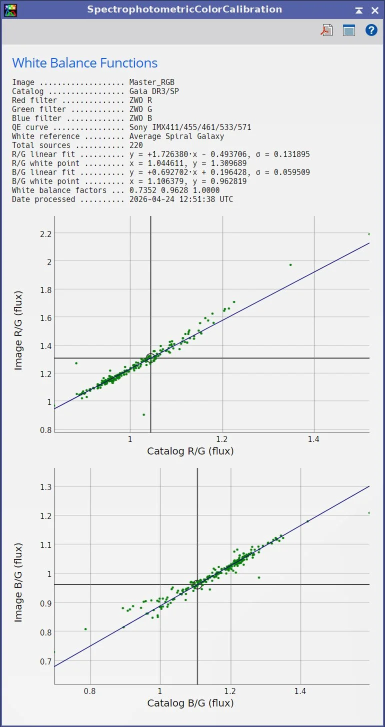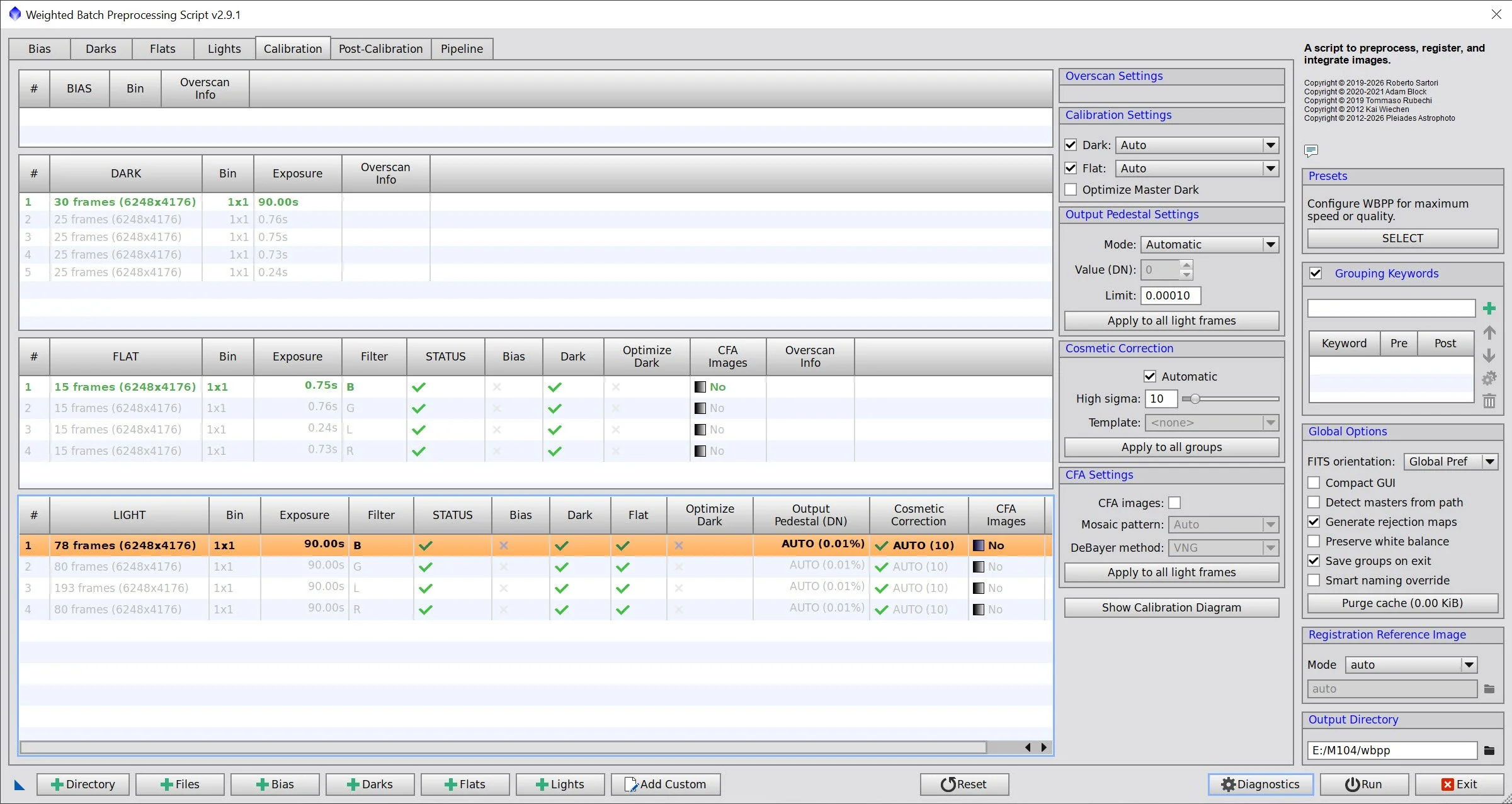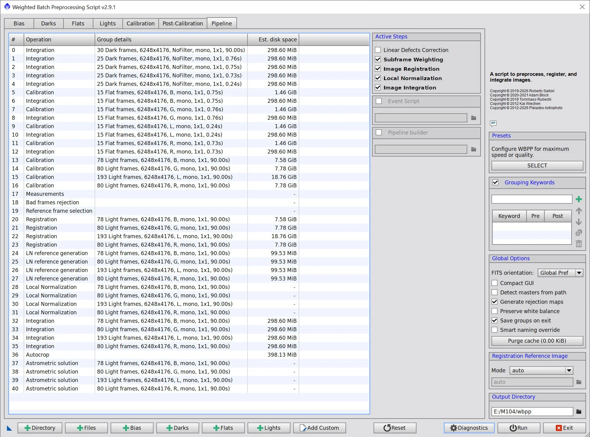 With the bad frames identified, I ran everything through WBPP with a quality-first configuration:
