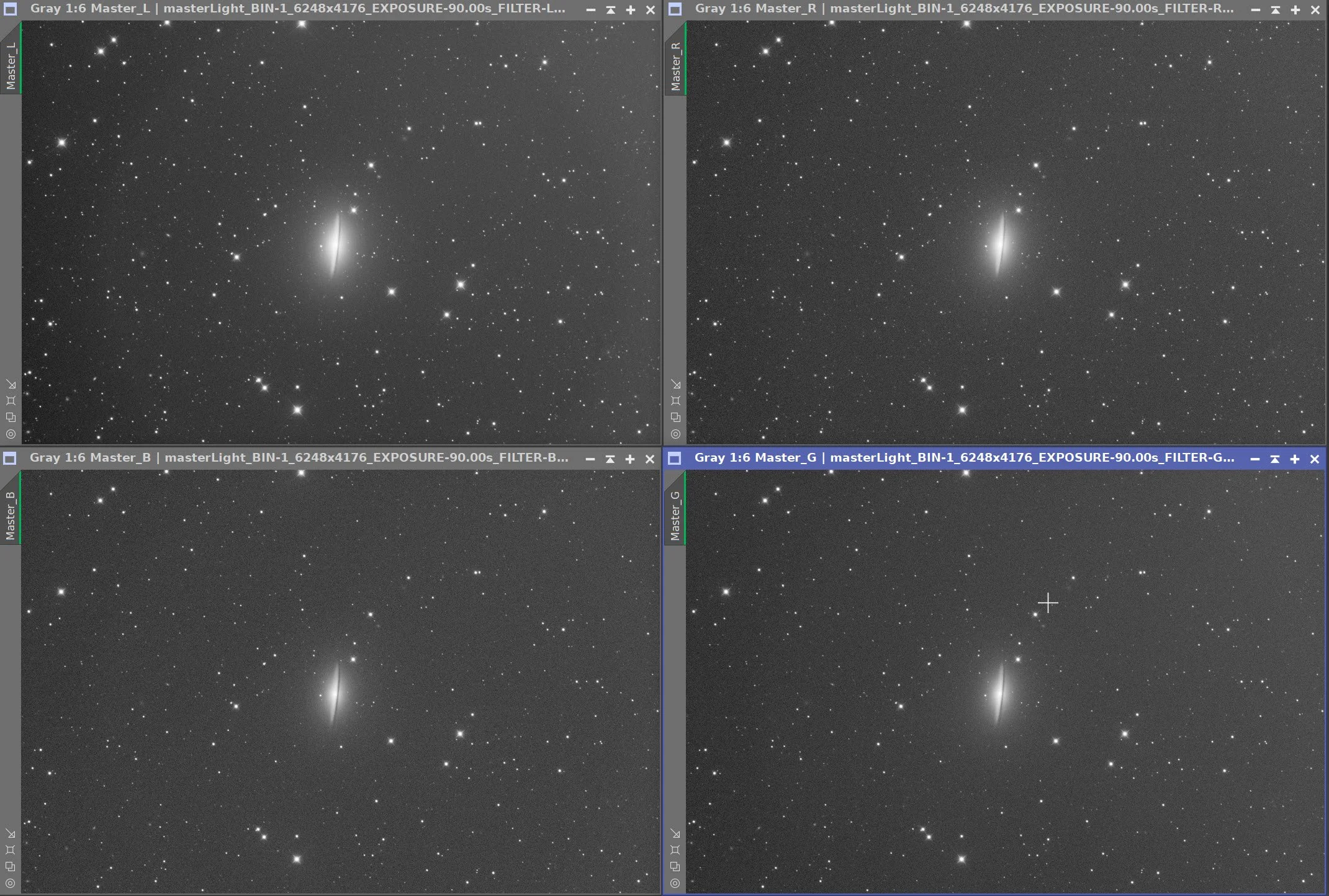 The Individual L, R, G, and B master linear images.