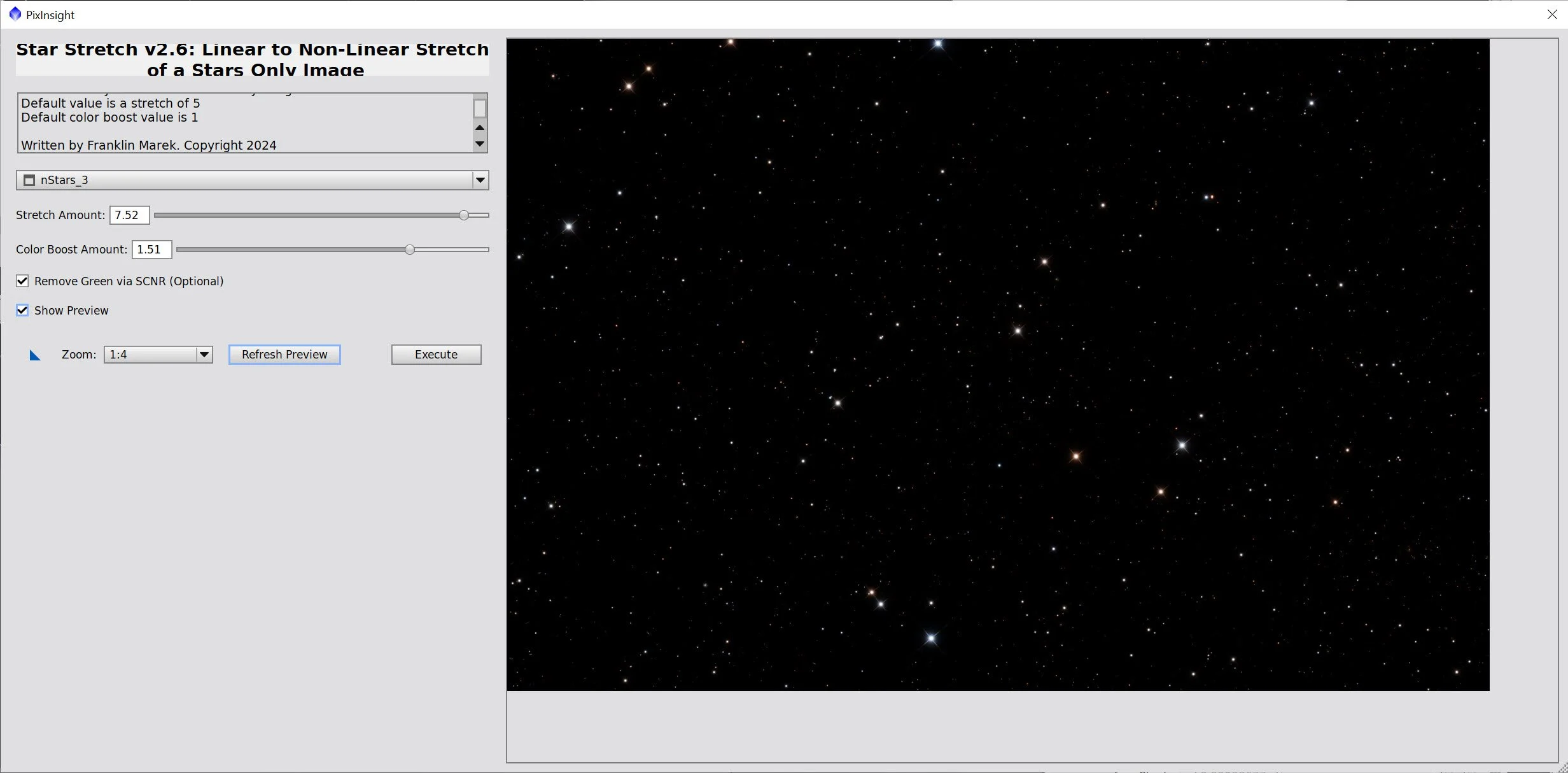 The Star Stretch Script and parameters used for Stars_3 - with the highest stretch of all