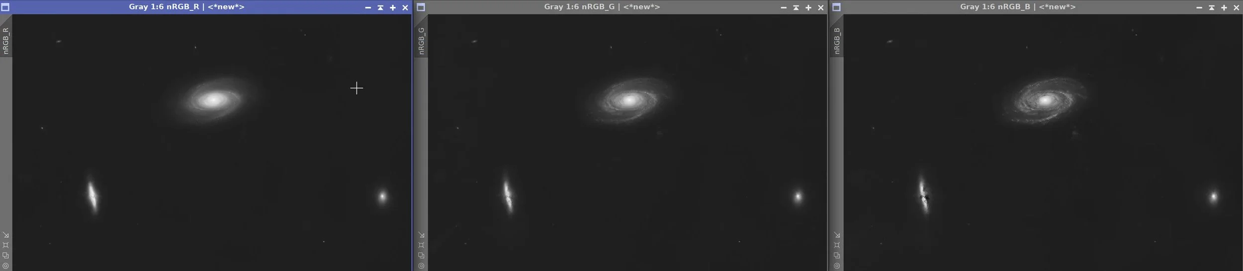 Extract the 3 layers from the nonlinear RGB image, and secure the starting red image for use.