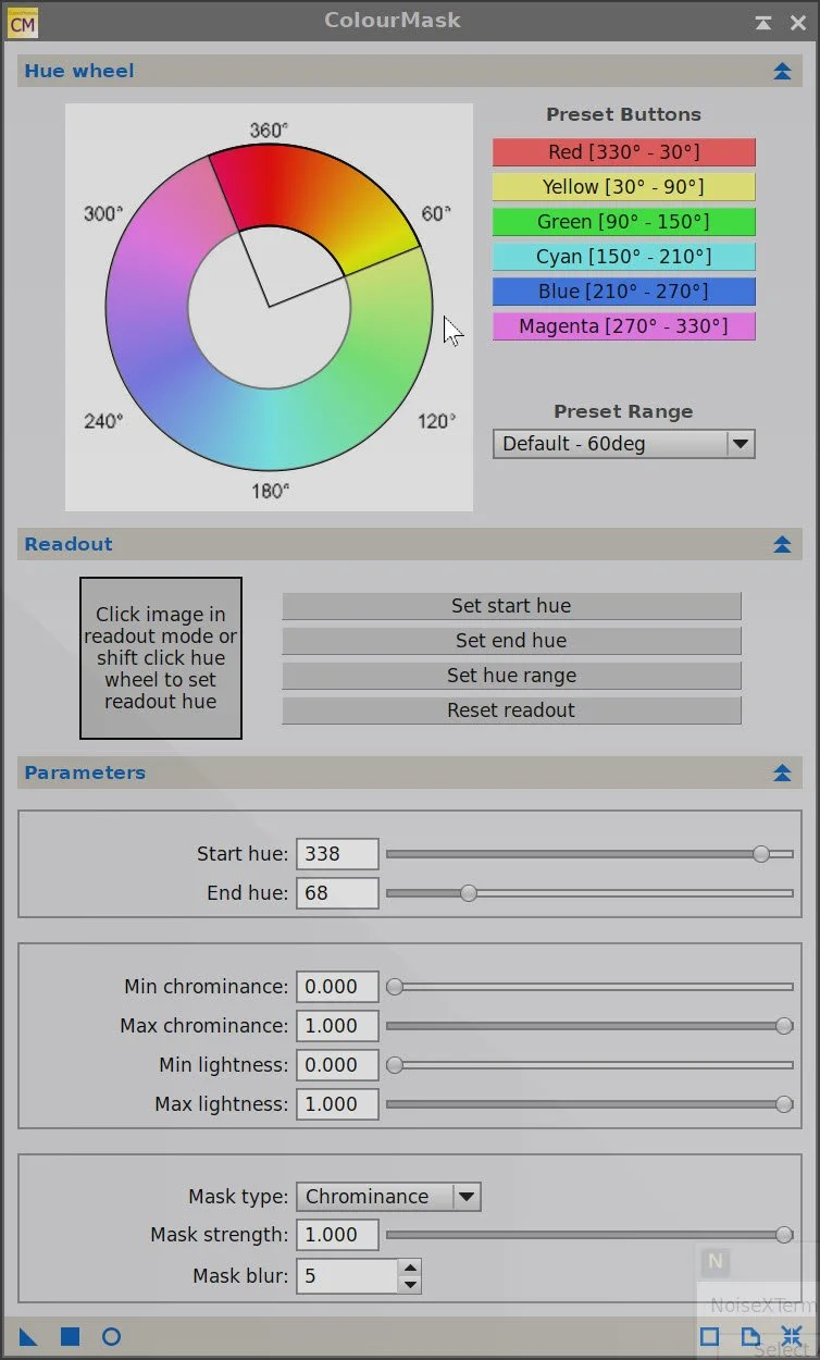 Using the ColourMask process, create a WarmMask with the params in the snapshot below.