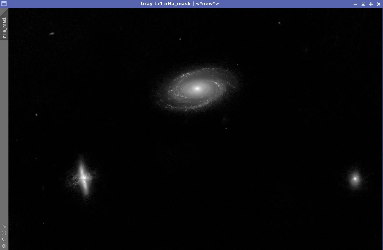 The next step is to create a mask to apply to the Red image so that the Ha contribution only goes where we want it to.
