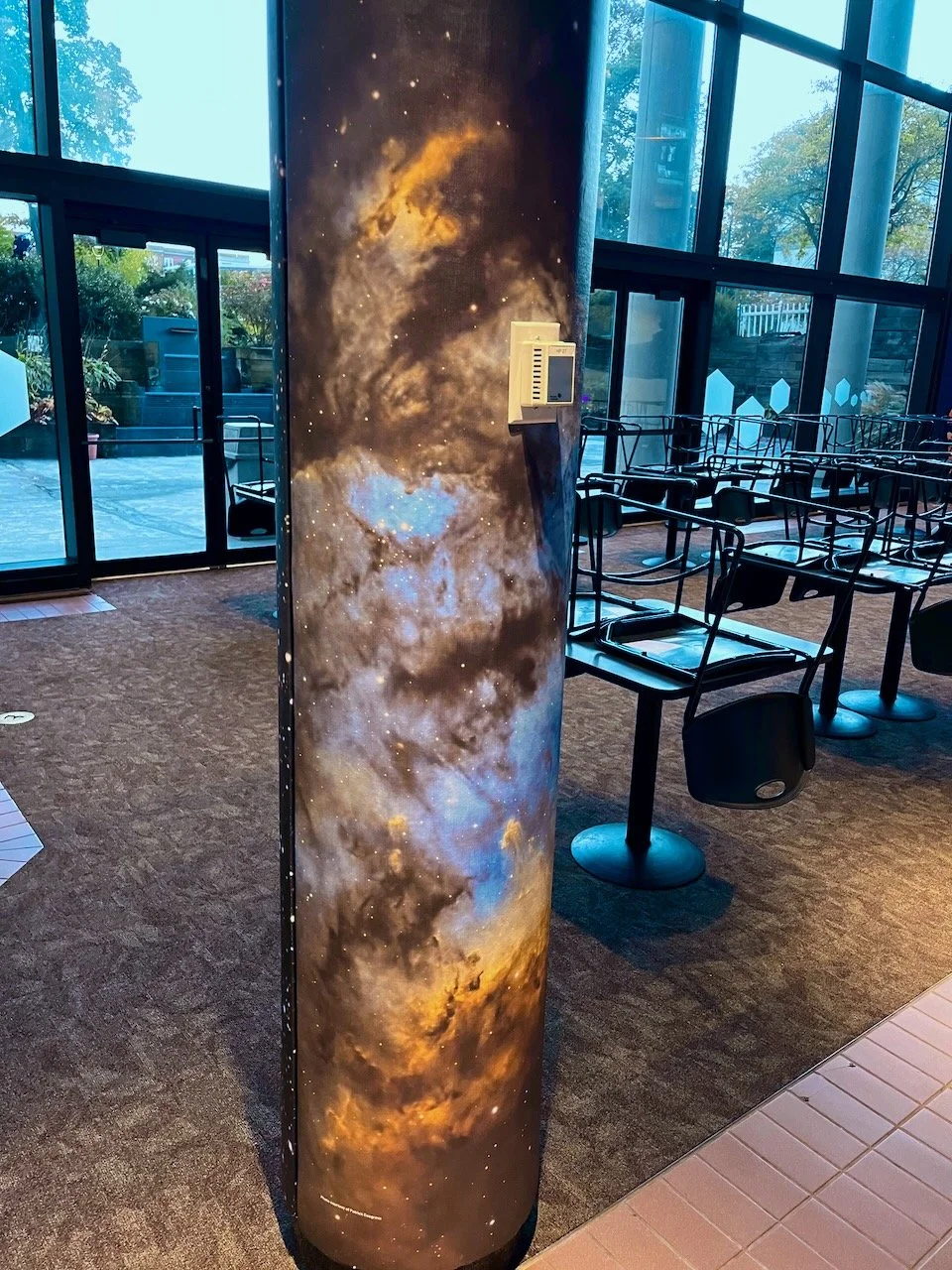 They have been preparing for a major new "Astronaut" exhibit, and as part of this, they wanted to decorate some large columns in the Museum’s Cafe with space images.