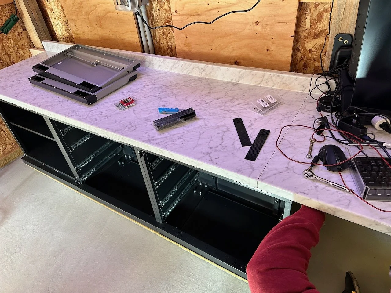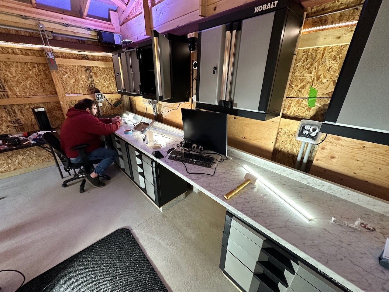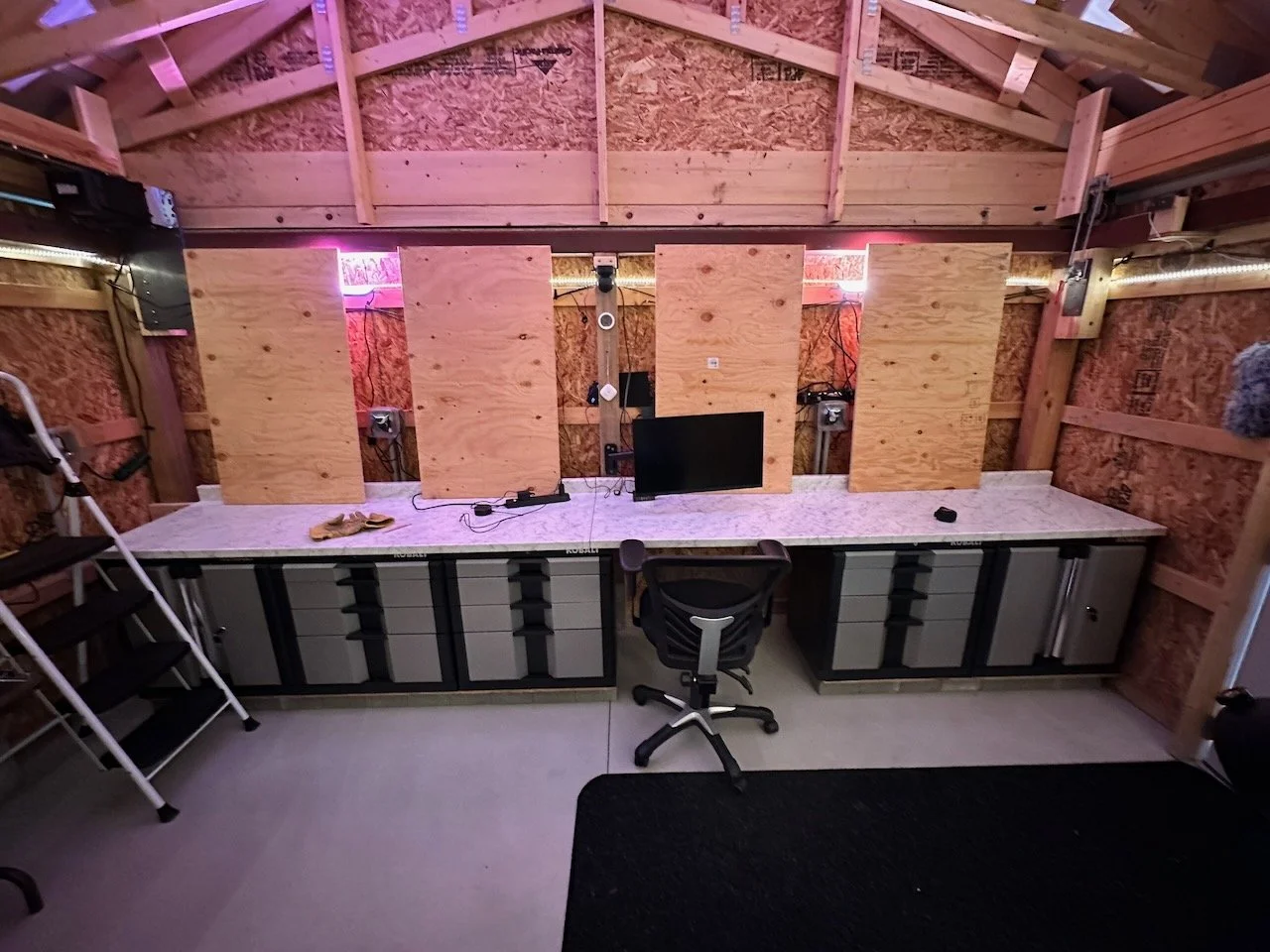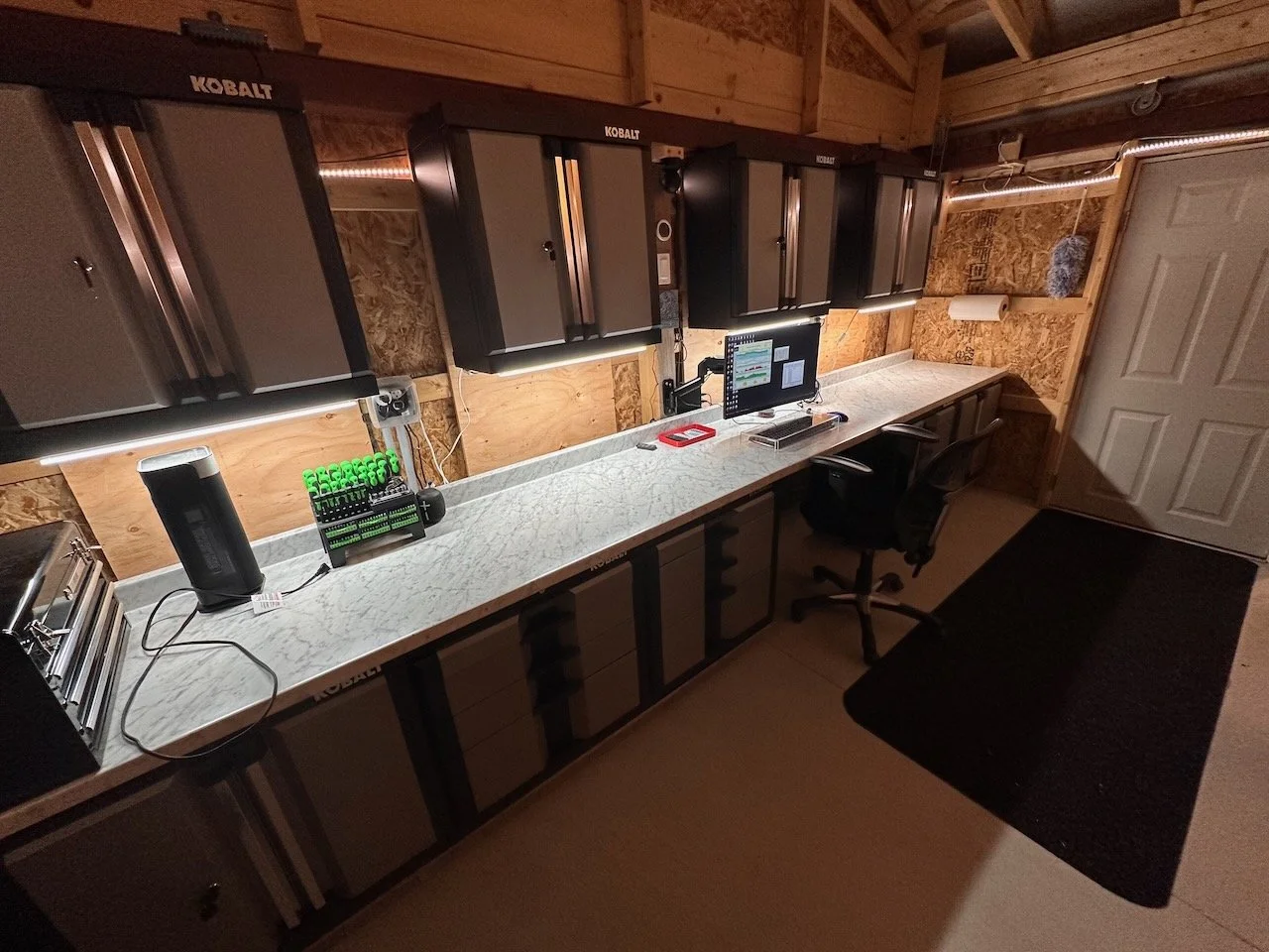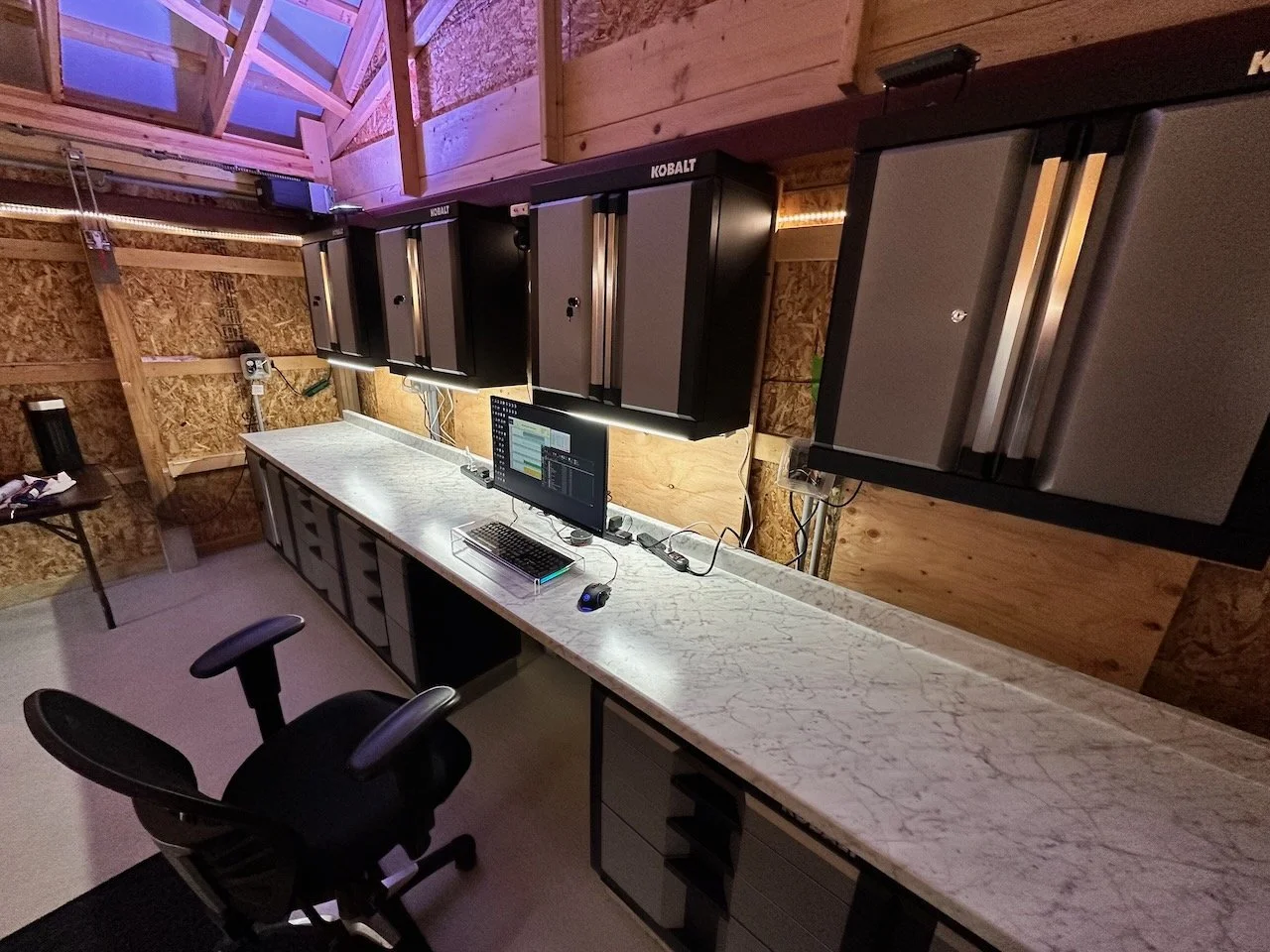 After running the observatory with temporary tables for months, I finally built the north wall exactly the way I originally intended: durable metal cabinets, a continuous laminate work surface, a dedicated computer “knee hole,” and lighting that makes the whole space feel finished.