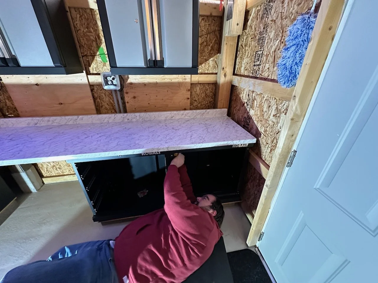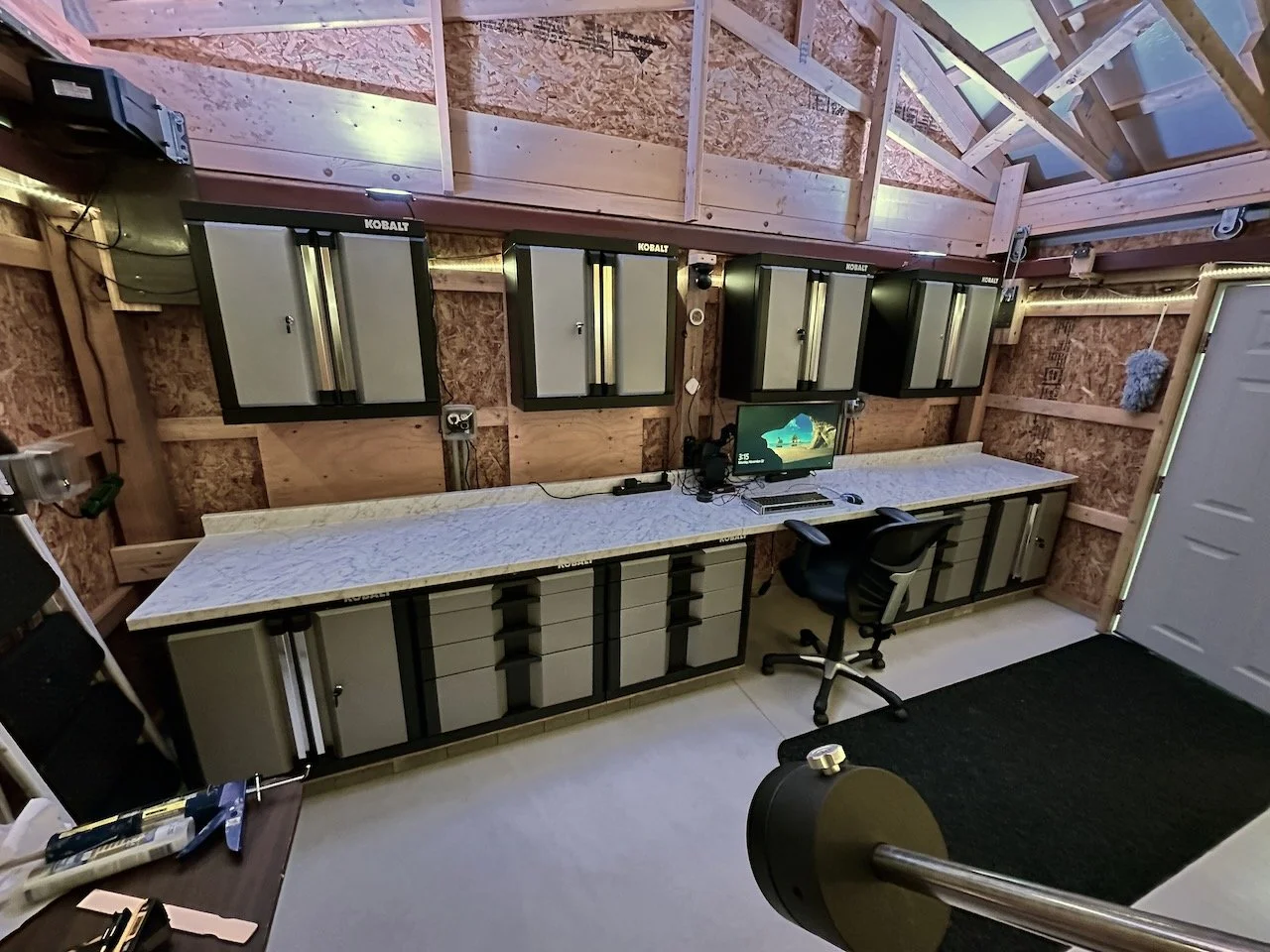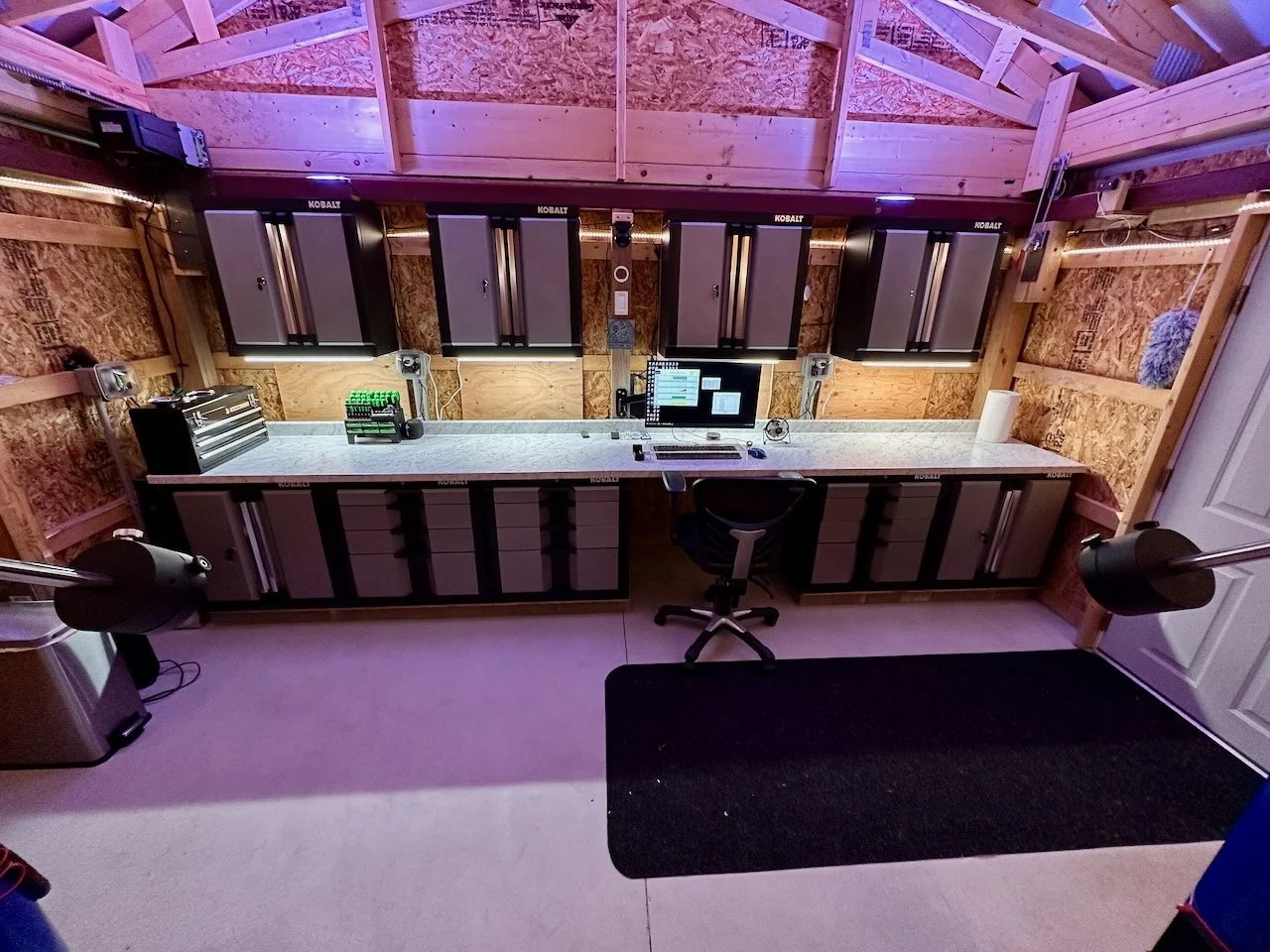 ChatGPT came back with a surprising idea. Why not get a powder-coated tool chest and garage cabinets?