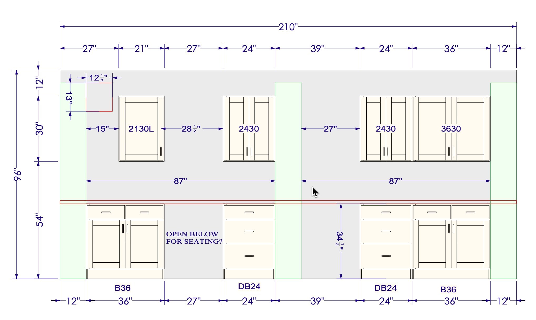 | Kitchen-designer cabinet plan | Good design, but too expensive for an observatory application. | ~$5,000 cabinets only; $7,000+ with countertop |