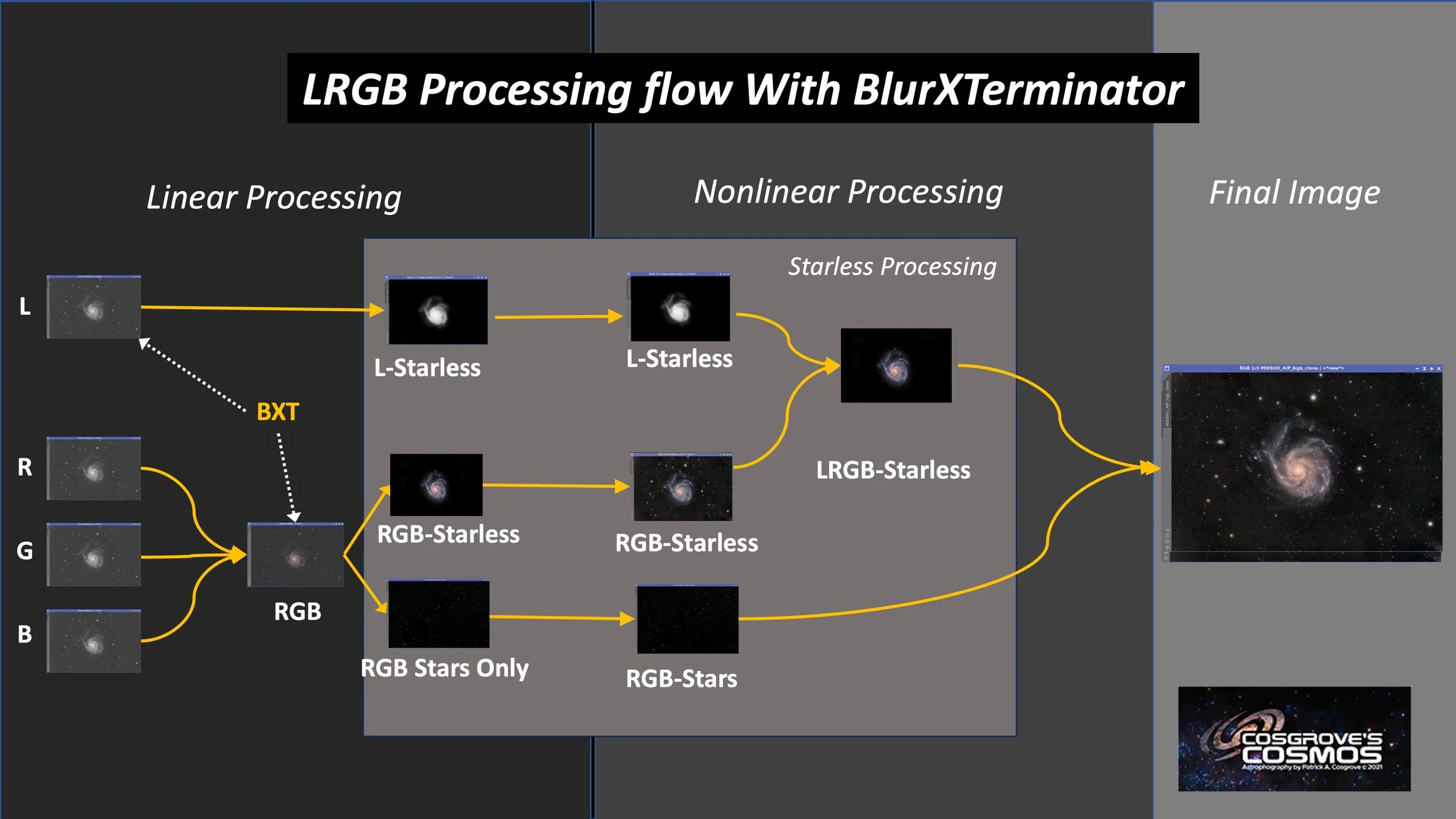 Look below for the complete step-by-step processing walkthrough! Note: This walkthrough is based on Pixinsight.