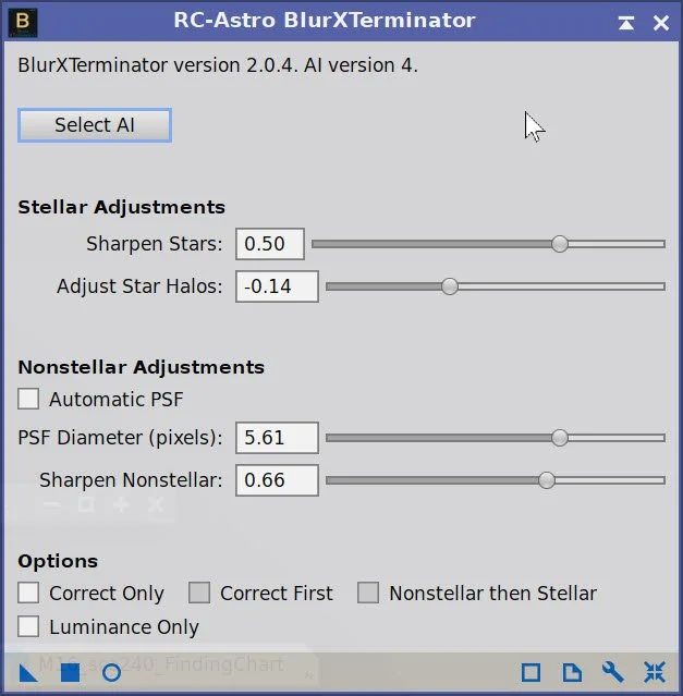 One of the things that has always impressed me with StarXterminator is how well it worked. Blemishes were rare and minimal. But these are problematic. I suspected that this had to do with the SCA260 and the nature of its defraction spikes. Perhaps they were different than what RC-Astro had trained on.
