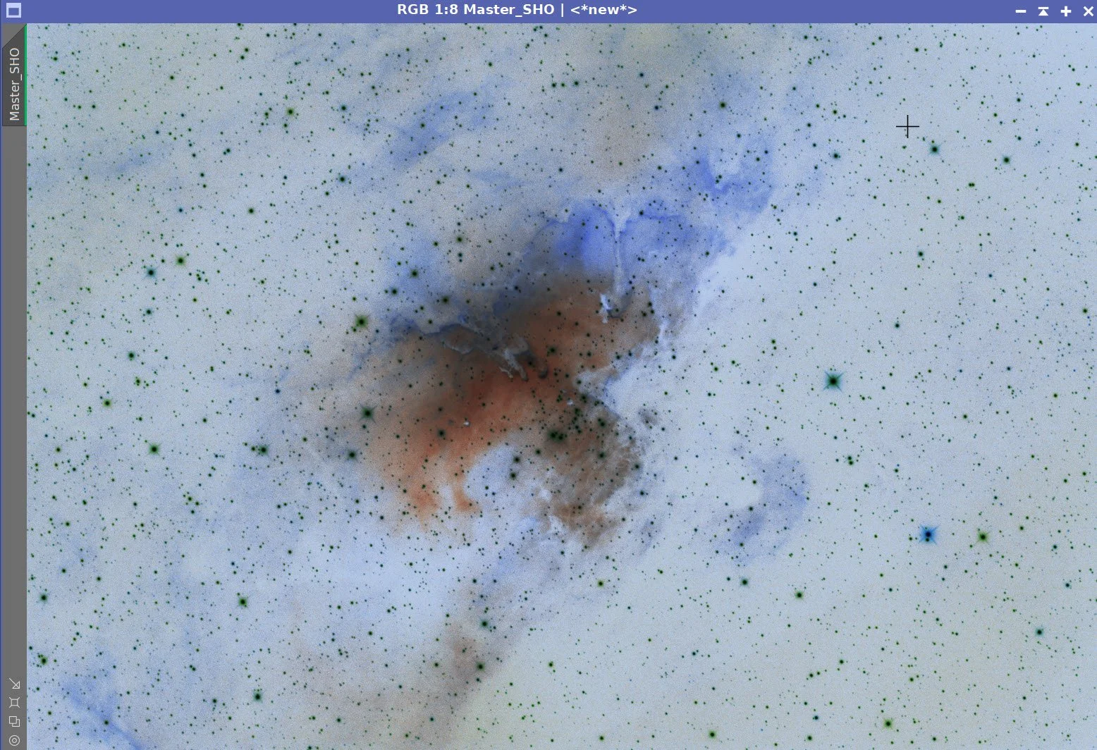 So I went back to the nonlinear master SHO image - which looked like this in a few sample spots.