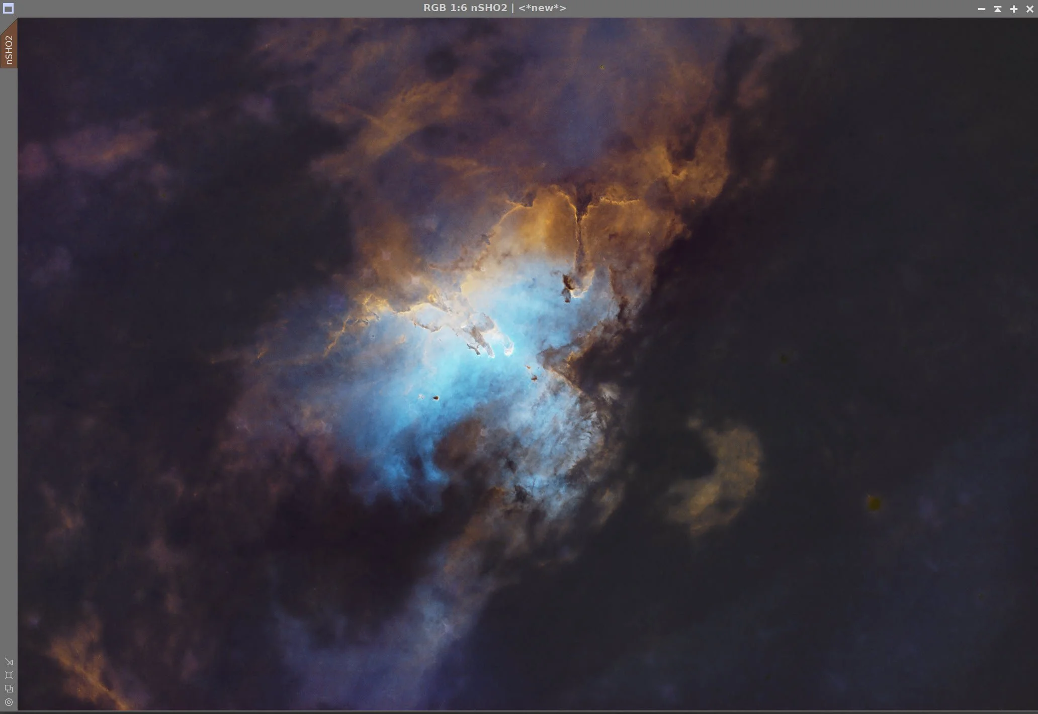 So, I used my normal workflow, and as I reached a decent point with the nonlinear starless image, I did a quick ScreenStars to reunite the starless version with the stars to see how it was progressing.