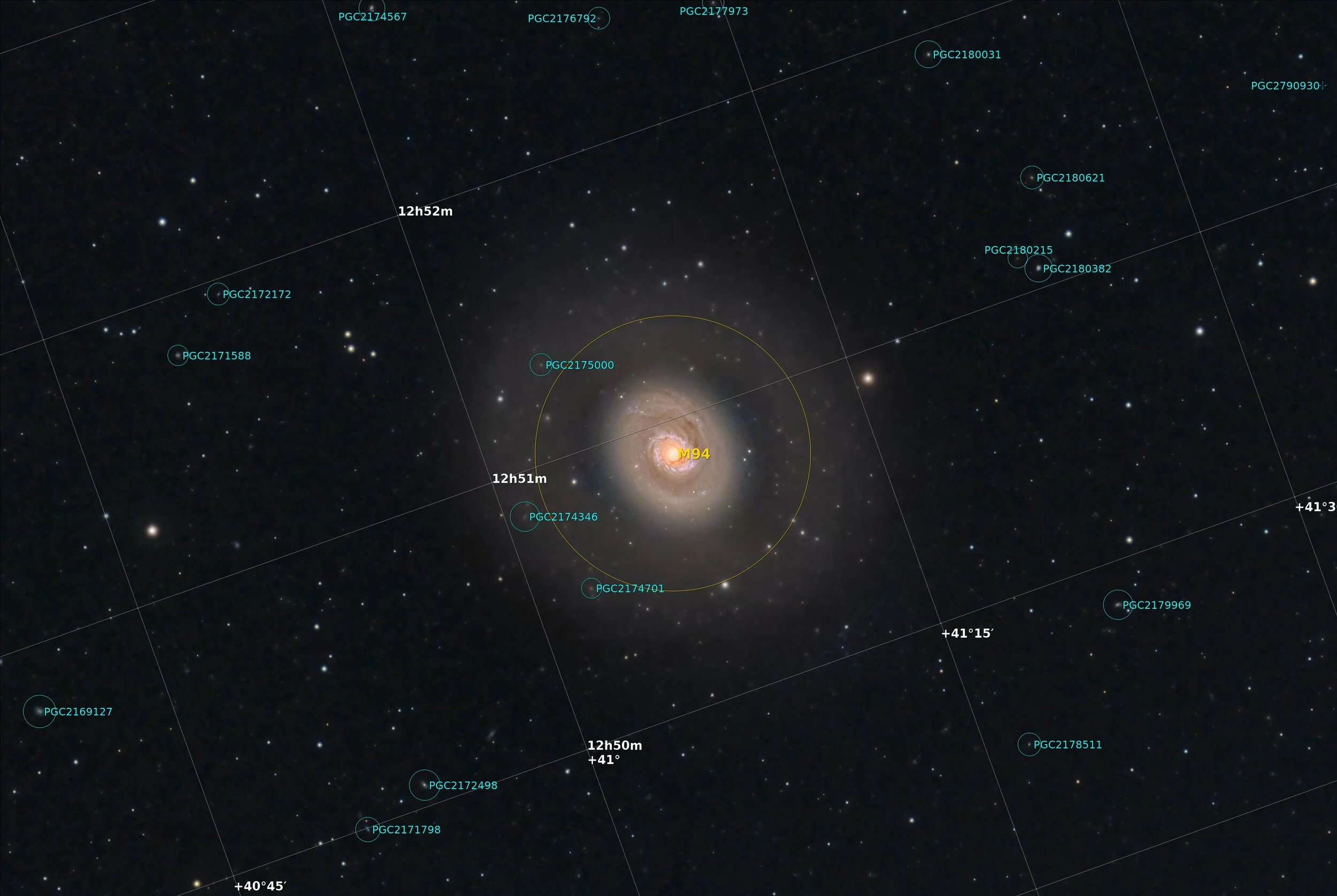 An annotated version of M94 - created using Pixinsight’s Imagesolver and AnnotateImage scripts.
