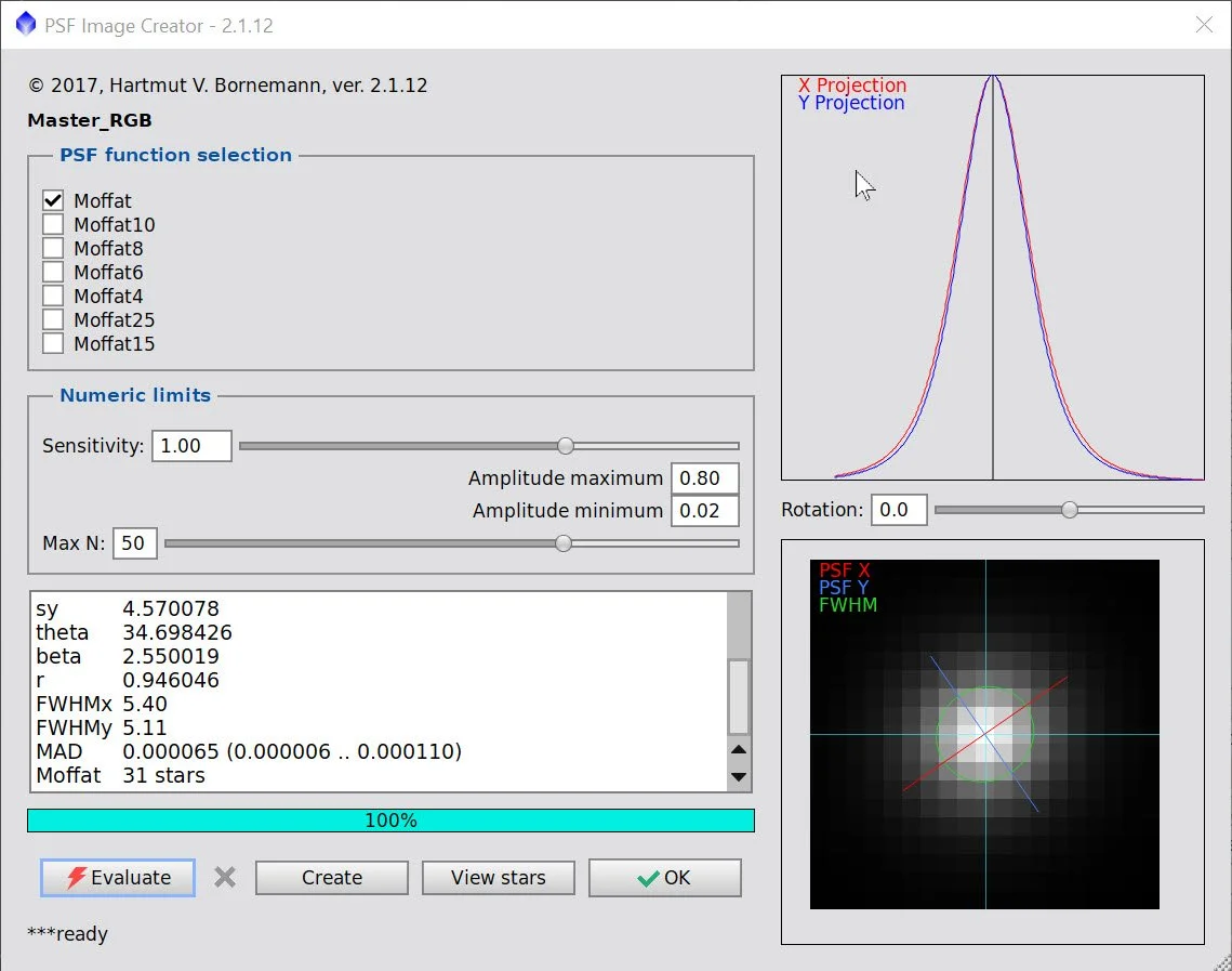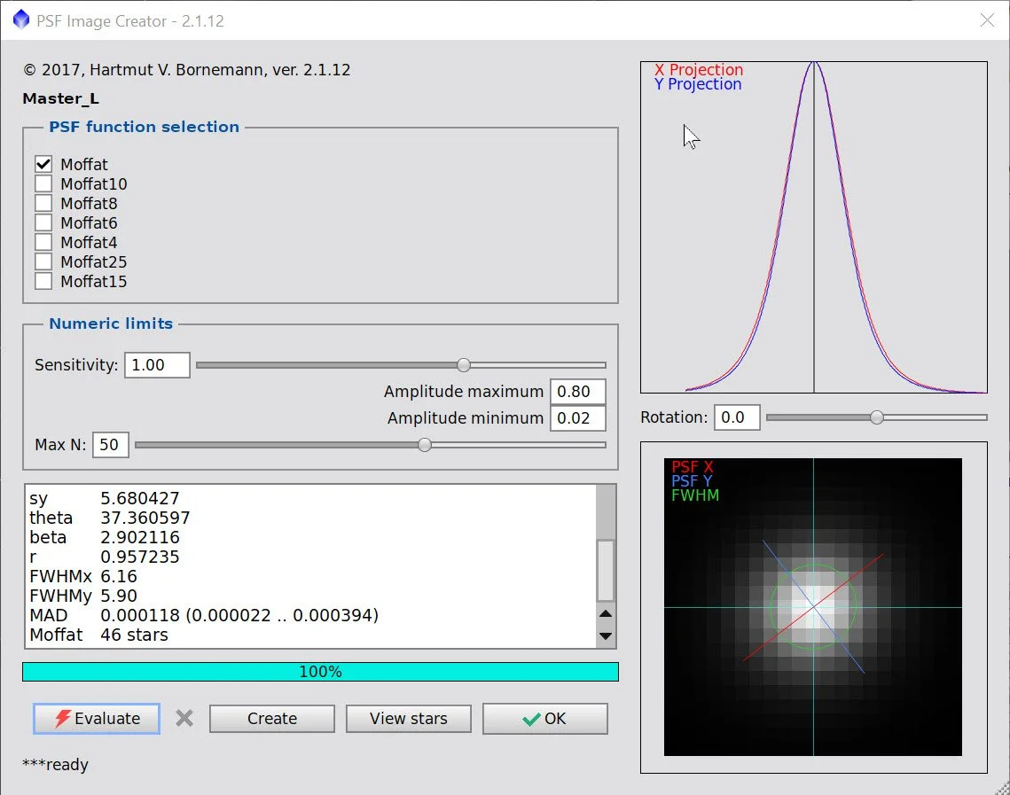 Run PFSImage to get star sizes. X = 6.616 , Y= 5.90