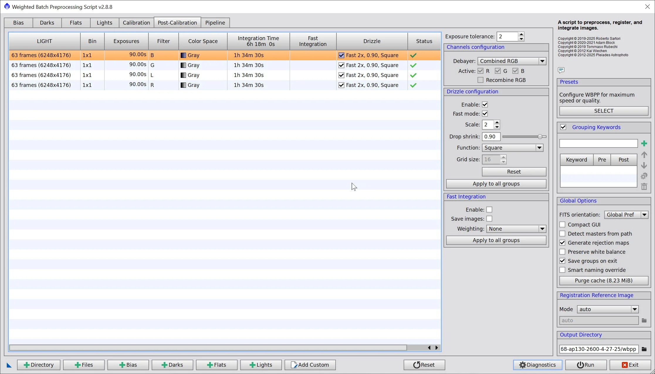 With that, I began my preprocessing with Pixinsight’s WBPP.