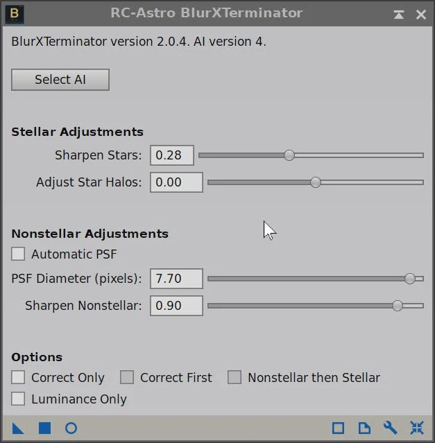 Run BXT Full using the star size of 6.8. Much higher than PFSImage star size. See the panel shot below.