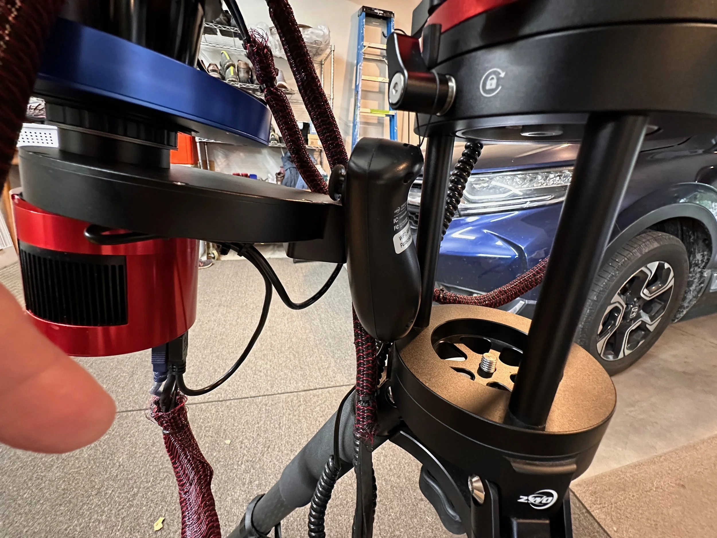 The portable scope platform is supposed to be, well, portable. That means light and compact. In determining how to pack this platform for travel, I realized that the finder scope mounting rings made no sense in this application and I changed them out with something both more rigid and compact - the William Optics 50mm base-slide ring set.