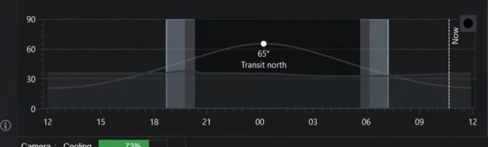 The target was well positioned at astronomical dusk and hit Zenith right at midnight.