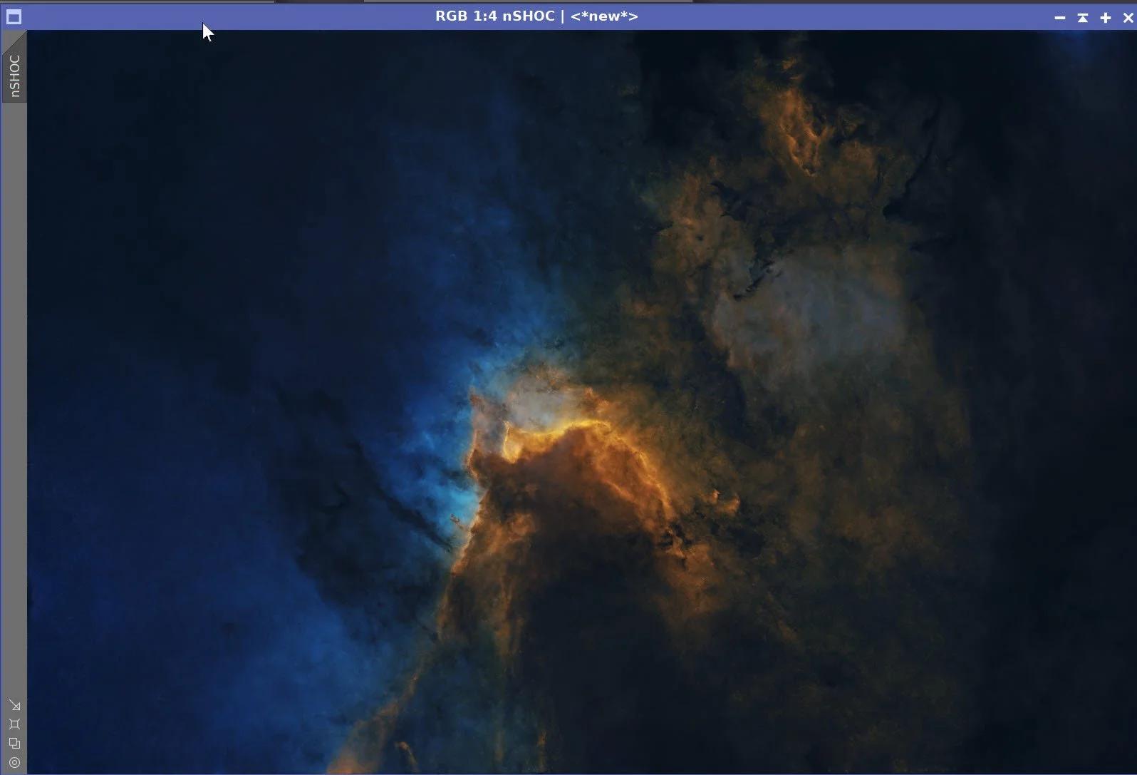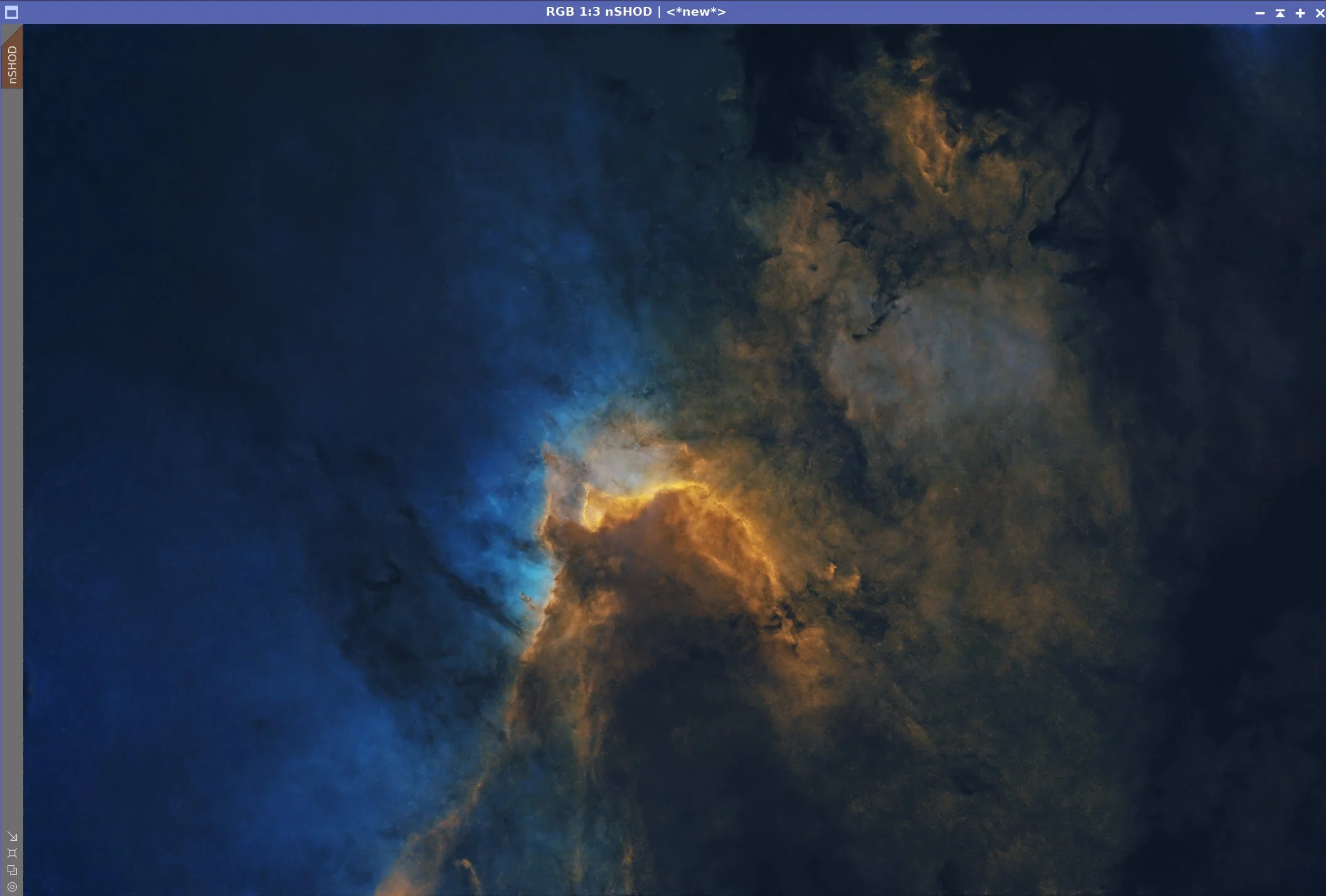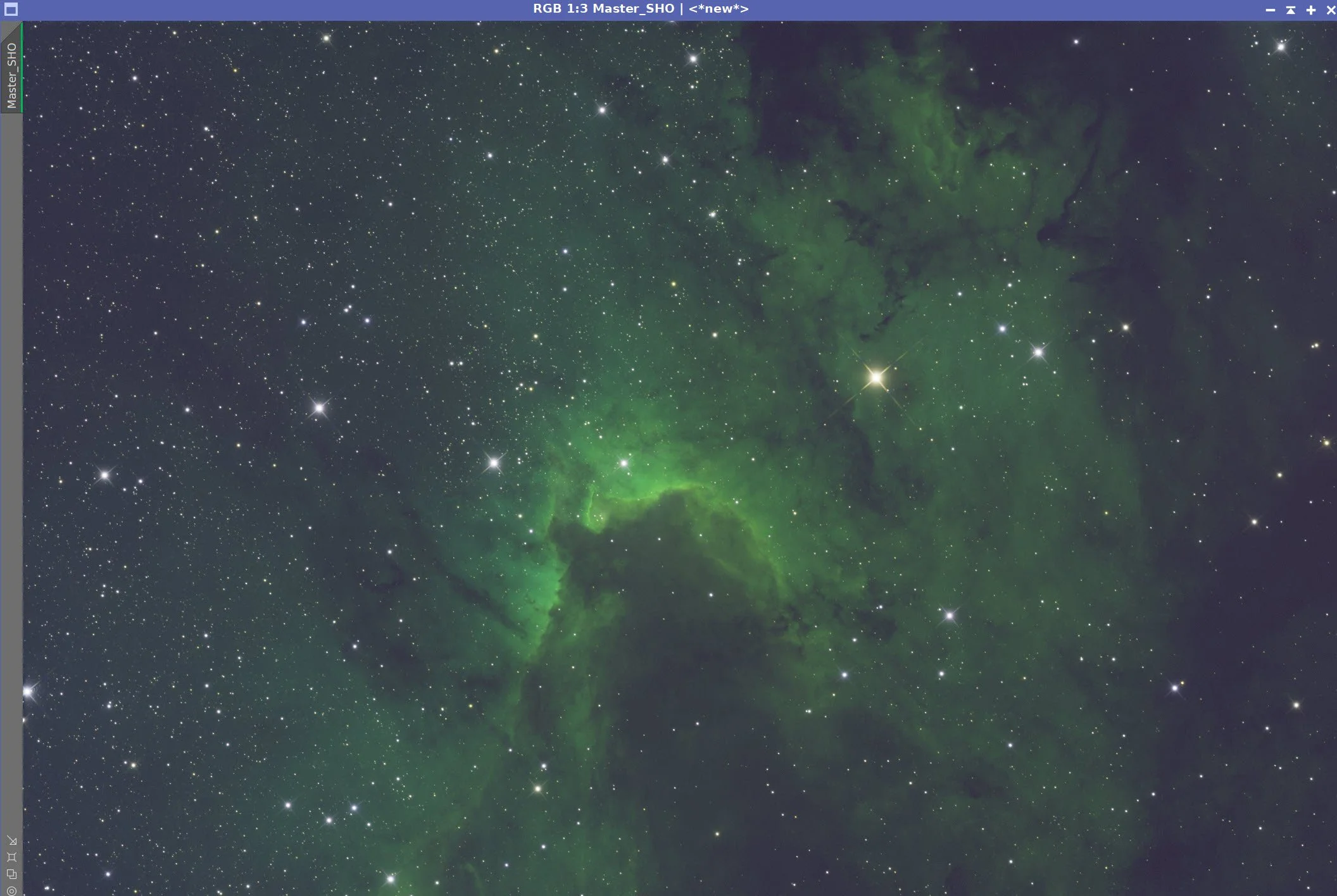 My approach here is to create the color SHO image early, perform linear processes on this color image, and then proceed with nonlinear processes.