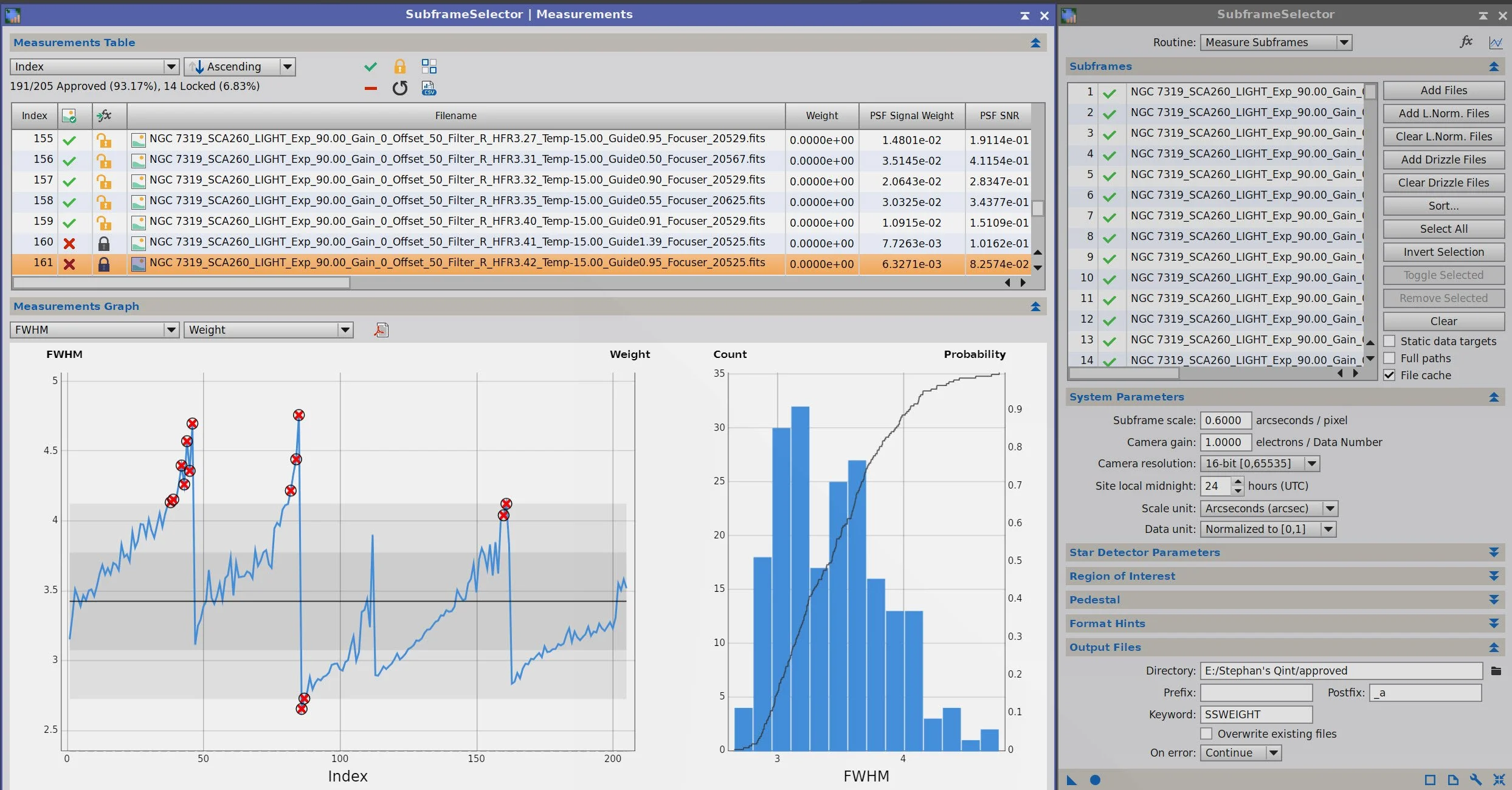 Because I wanted the sharpest image possible, I spent a lot of time scrutinizing the data before running the WBPP stacking.