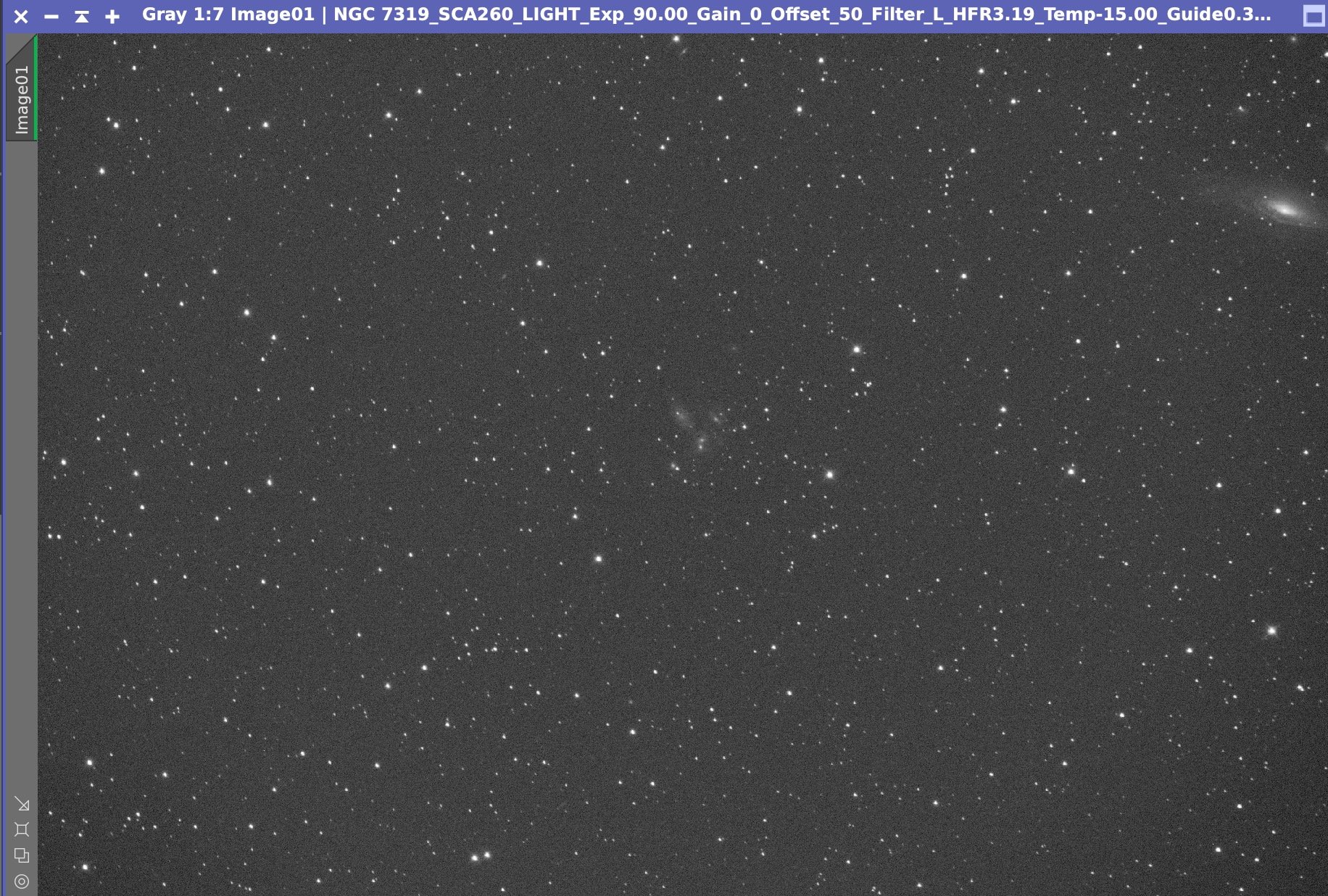 The subs reinforced how small and faint these galaxies were. Here is an example of a single Lum subframe: