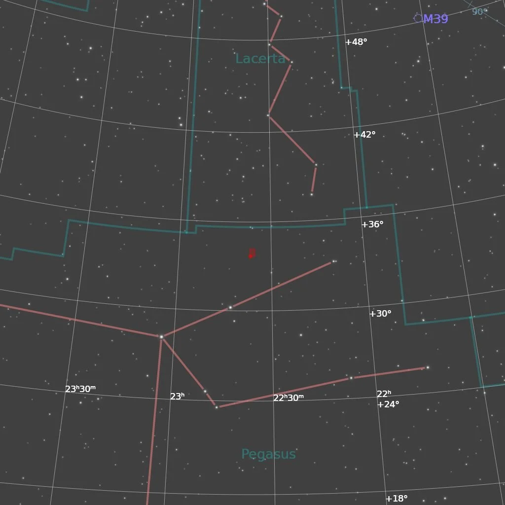 He initially recorded four nebulae in close proximity (which later received the New General Catalogue designations NGC 7317, 7318, 7319, and 7320 in 1888). Decades later, improved observations revealed that one of Stephan’s original nebulae, NGC 7318, was actually two overlapping galaxies – now labeled NGC 7318A and NGC 7318B – bringing the total to five galaxies, hence the name Stephan’s Quintet.