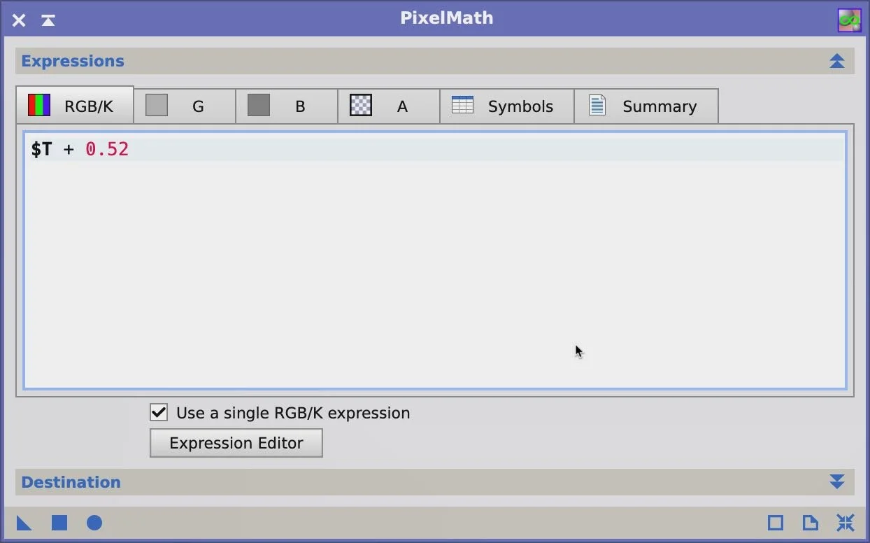 This simple PixelMath expression is all you need to add a constant to the Master FLat image, Just drap the triangle onto the image!
